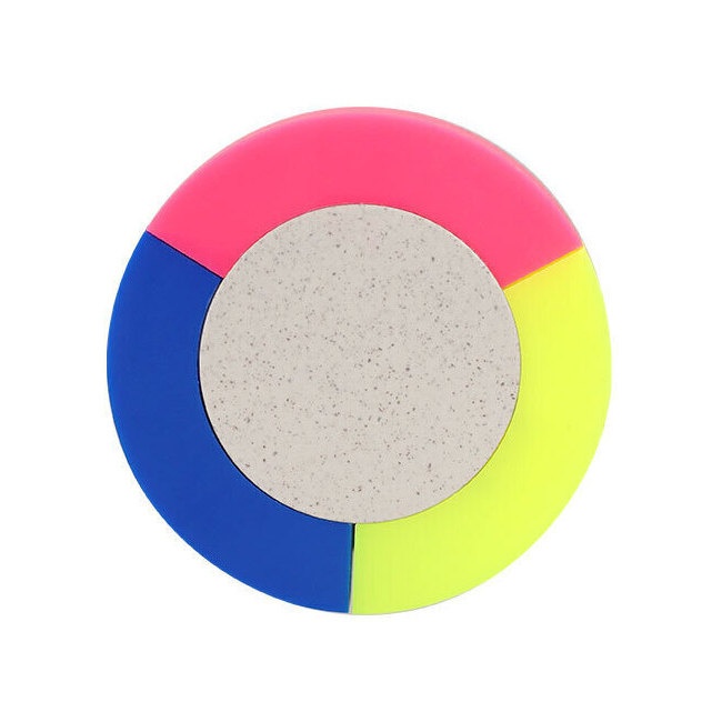 - Evidenziatore fluorescente originale a tre colori fabbricato in canna di grano. Con corpo circolare in finitura opaca morbida, progettato appositamente per la marcatura a colori pieni.