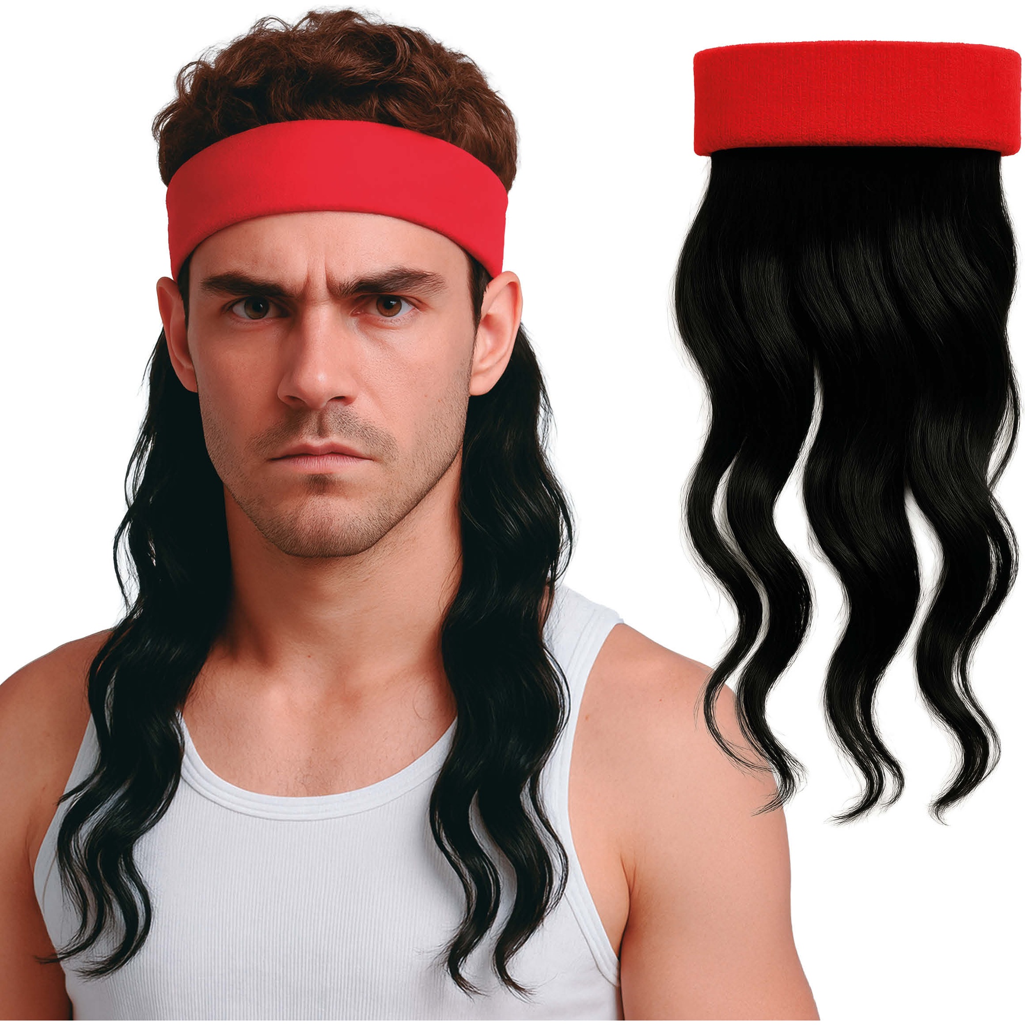 Parrucca in stile Rambo pensata per completare look da adulto con un tocco retrò e guerriero. Presenta capelli lunghi e ondulati di colore castano scuro e una fascia rossa integrata che ricrea l'acconciatura iconica. Realizzata in fibre sintetiche di poliestere, assicura un aspetto uniforme e dall'effetto scenico. Taglia unica per adulto, facile da indossare e confortevole per feste ed eventi.