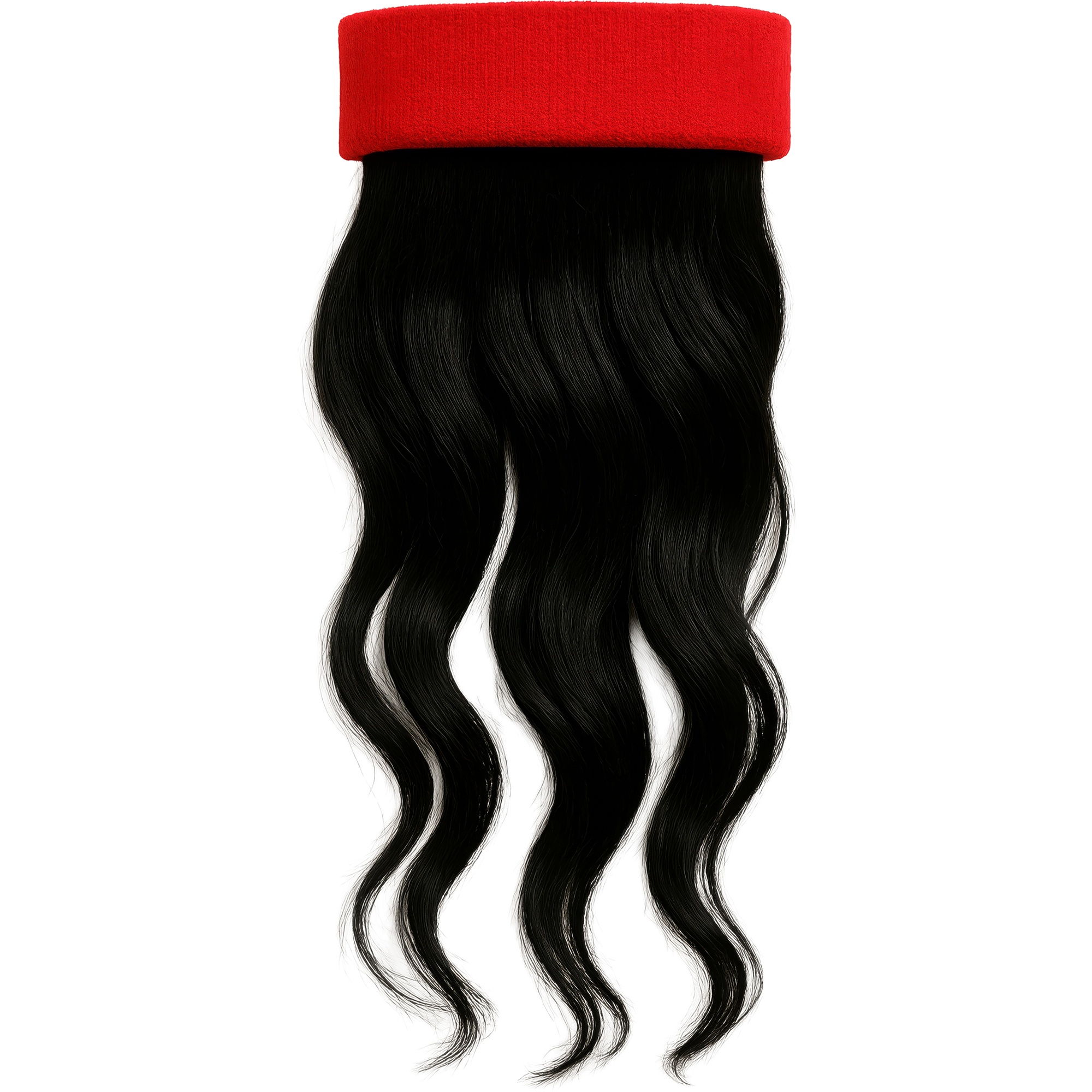 - Fascia rossa integrata per un'acconciatura fedele al personaggio.