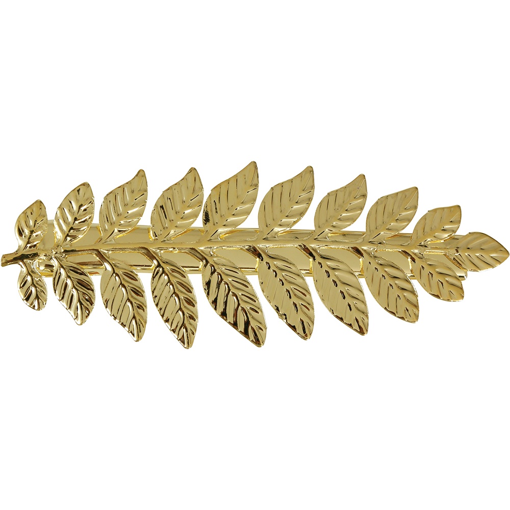 Fermaglio alloro dorato con motivo a foglie ispirato all'estetica classica greca e romana. Dona un tocco elegante e sofisticato a qualsiasi acconciatura. Il meccanismo a clip trattiene i capelli con fermezza e garantisce un'applicazione rapida e comoda. Design leggero e d'effetto che valorizza il look senza appesantirlo.