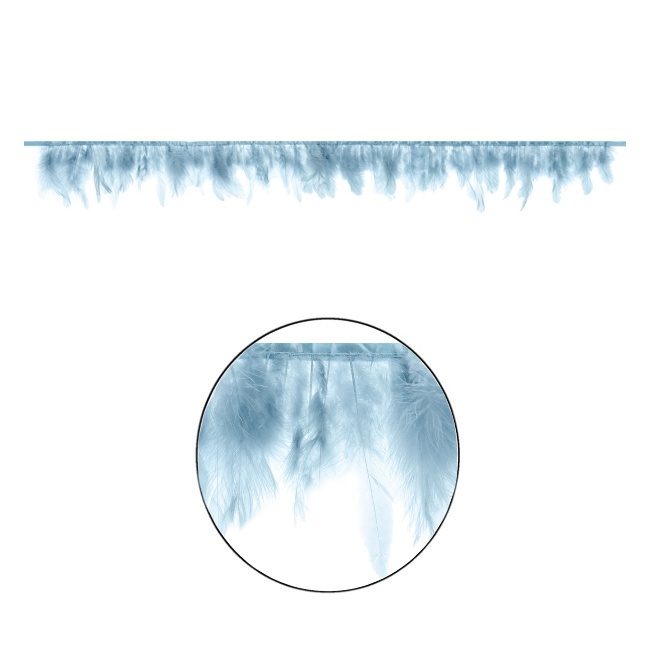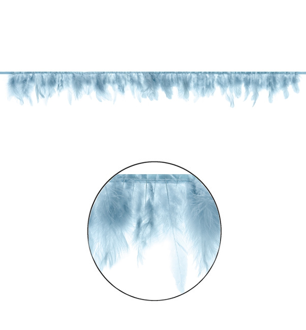 Una splendida striscia con nastro da cui pendono piume di circa 15 cm di lunghezza.
