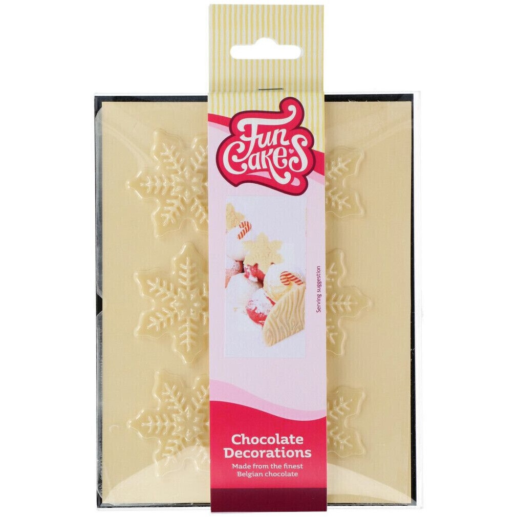 - 6 decorazioni in cioccolato bianco belga di Funcakes con design perfetto per il Natale.