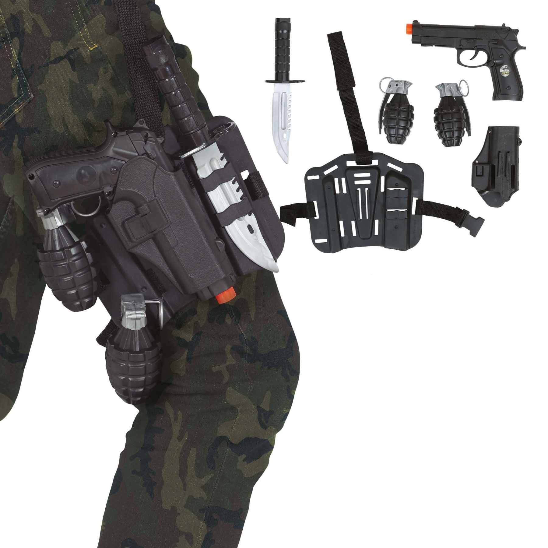 Fondina tattica militare con granate, machete e pistola