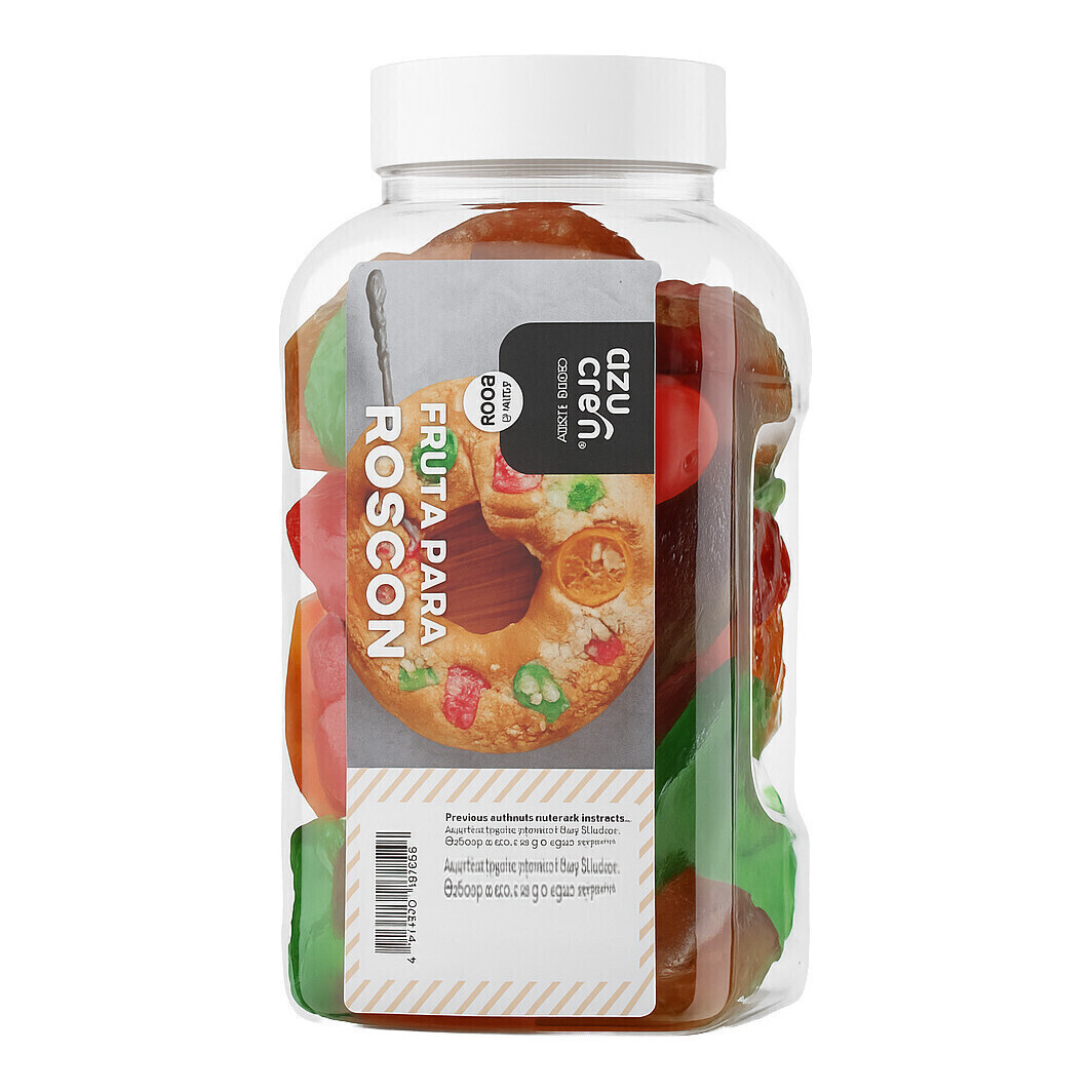 Ingredienti: ciliegia calibrata (22-24), mezzi frutti di ciliegia calibrata, arancia tagliata a dischetti, zucca, sciroppo di glucosio e fruttosio, zucchero, acido citrico (E330), sorbato di potassio (E202), metabisolfito di sodio (E223), curcumina (E100), blu brillante (E133), eritrosina (E127), carminio di cocciniglia (E120).