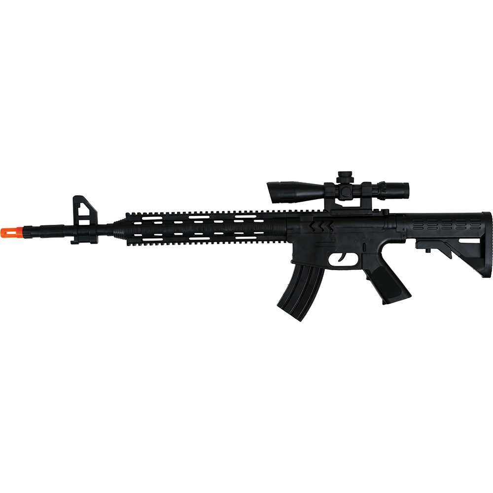 Fucile d'assalto realistico pensato come accessorio per costumi da poliziotto, militare o forze speciali. Il design curato garantisce un aspetto autentico durante carnevali, eventi cosplay e shooting fotografici a tema. Realizzato in PVC leggero e dotato di punta di sicurezza arancione, offre un effetto visivo realistico mantenendo un uso responsabile. L'accessorio ideale per completare la tua caratterizzazione senza appesantirla.