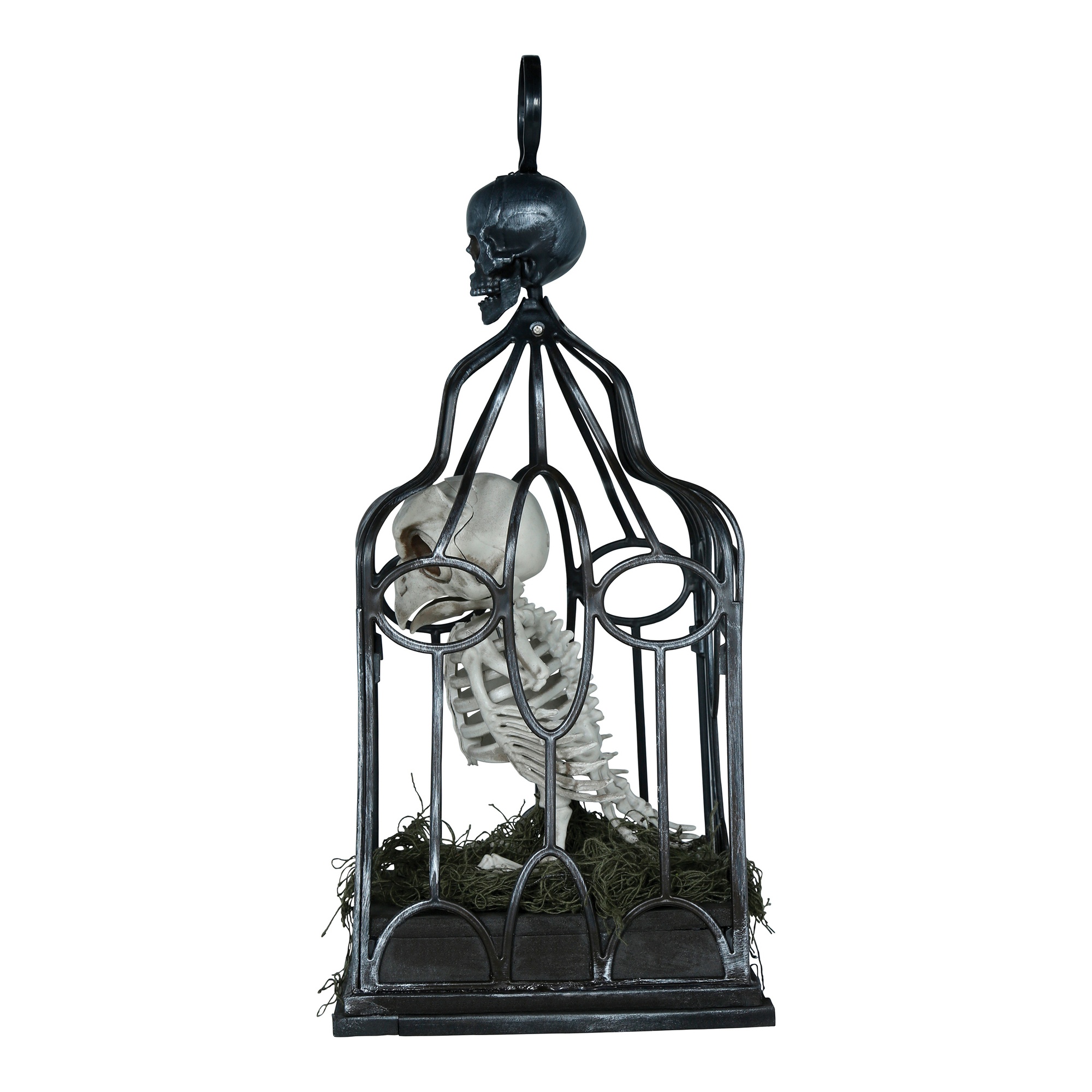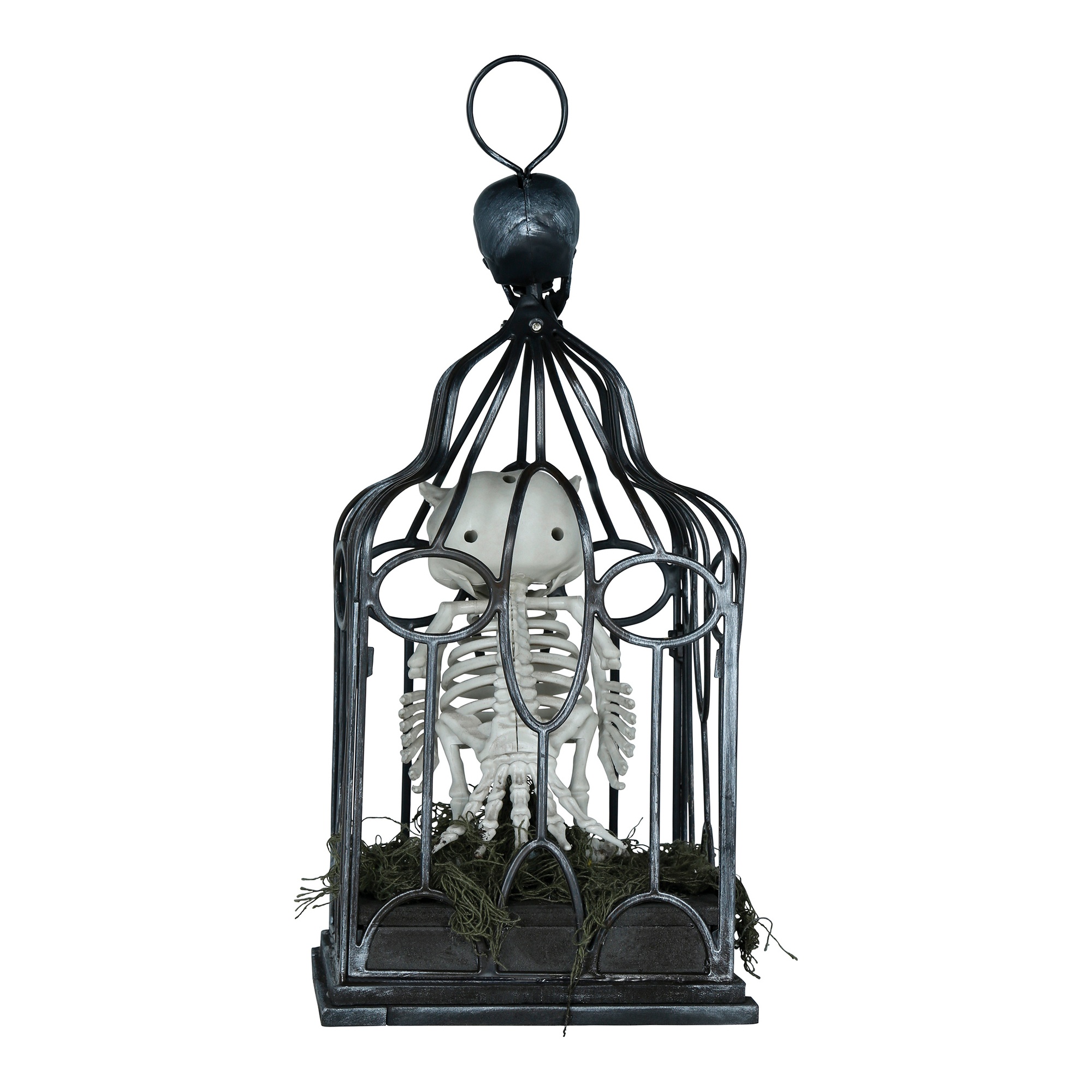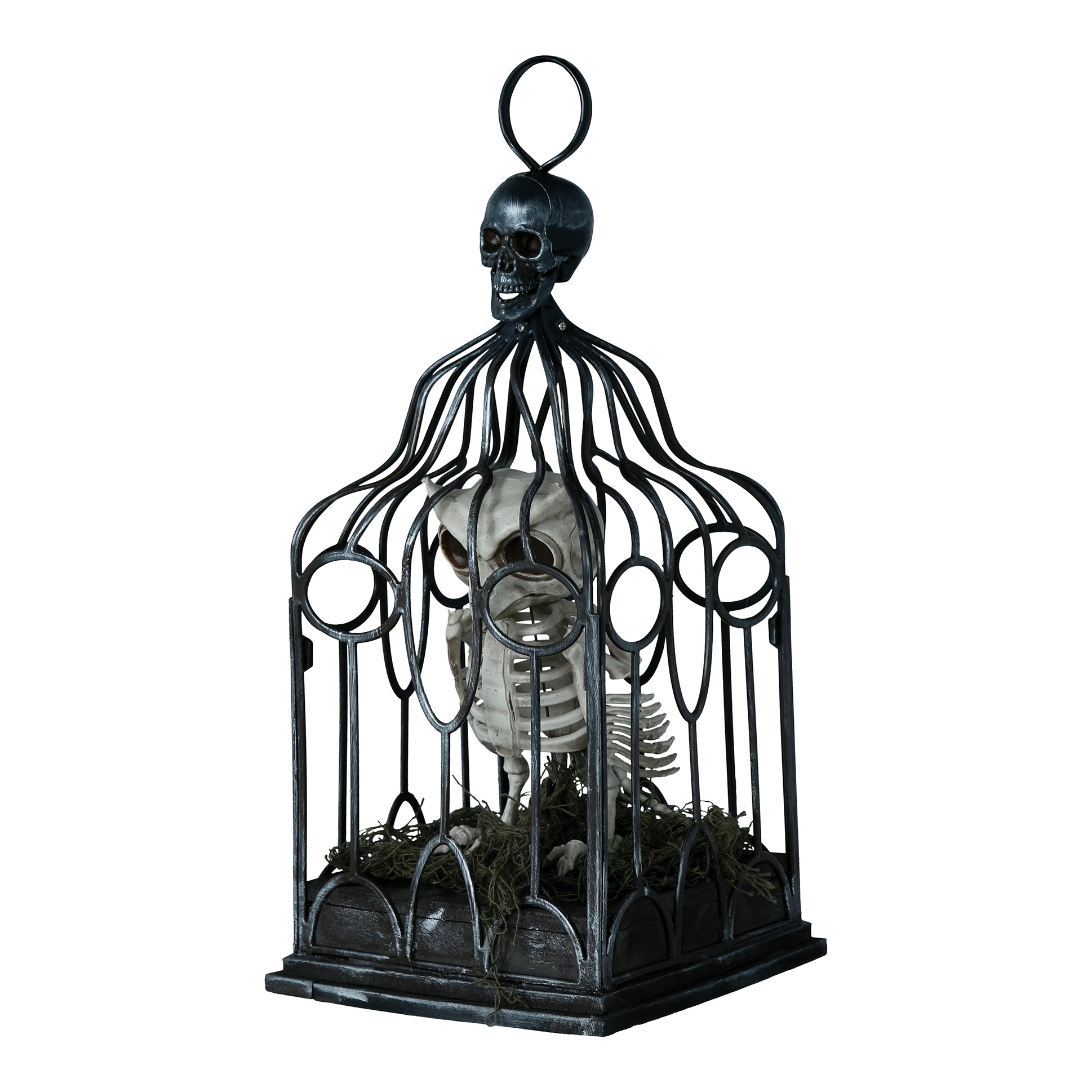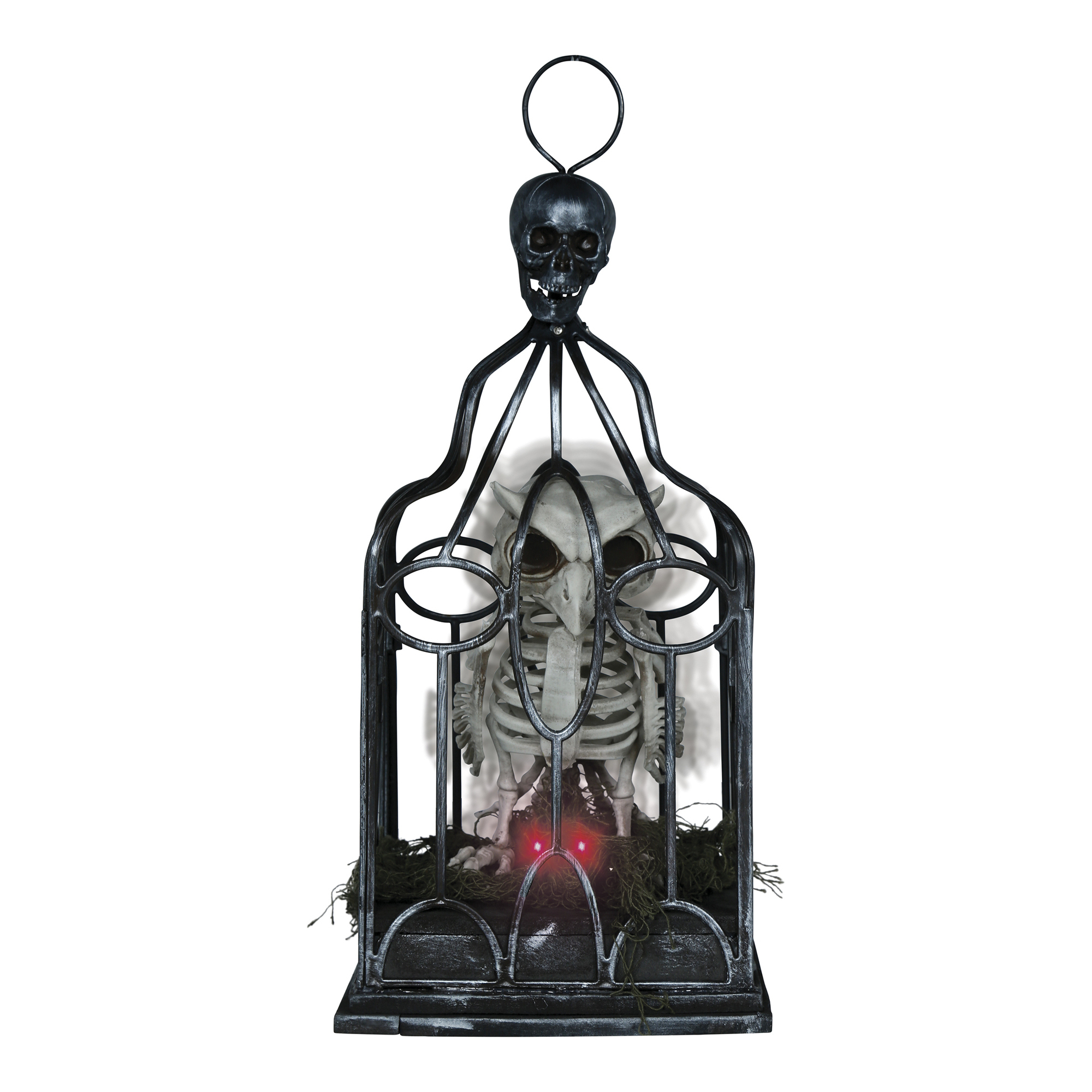 Gabbia con scheletro di gufo con luci, suono e movimento - 33 cm