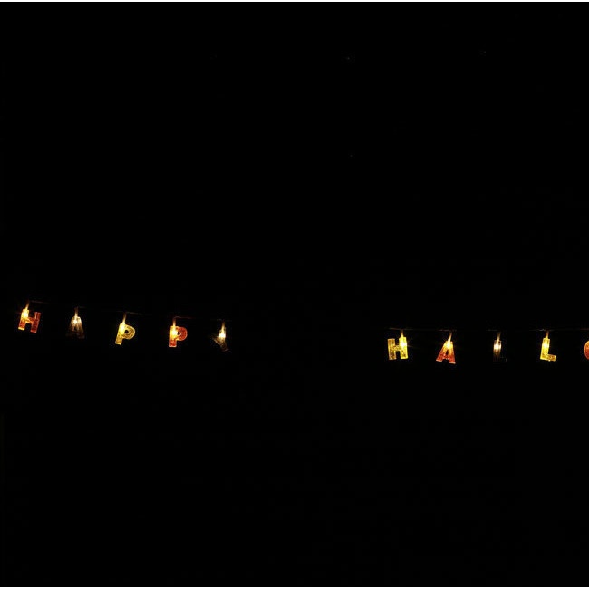 - Aggiungi un tocco di orrore alla tua decorazione con questa ghirlanda di cartello di Happy Halloween illuminata.