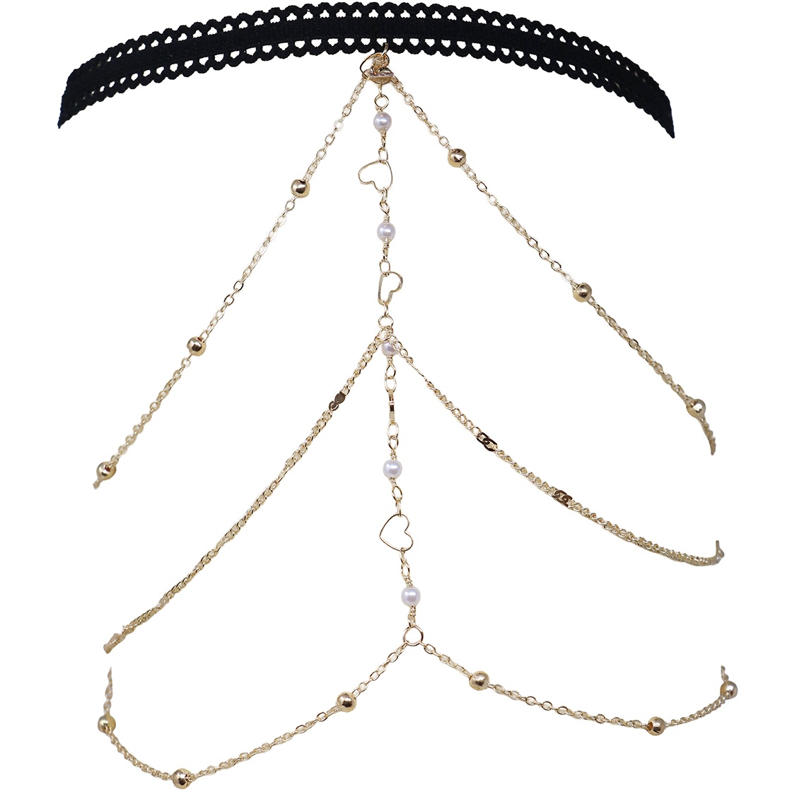 - Design boho con cuori e catene a cascata per un tocco romantico e di grande impatto.
