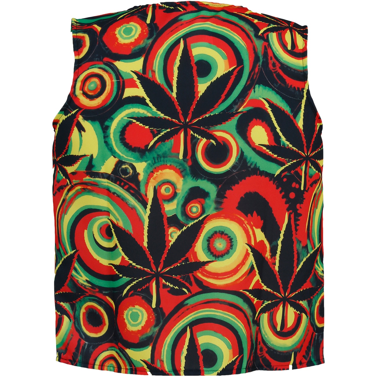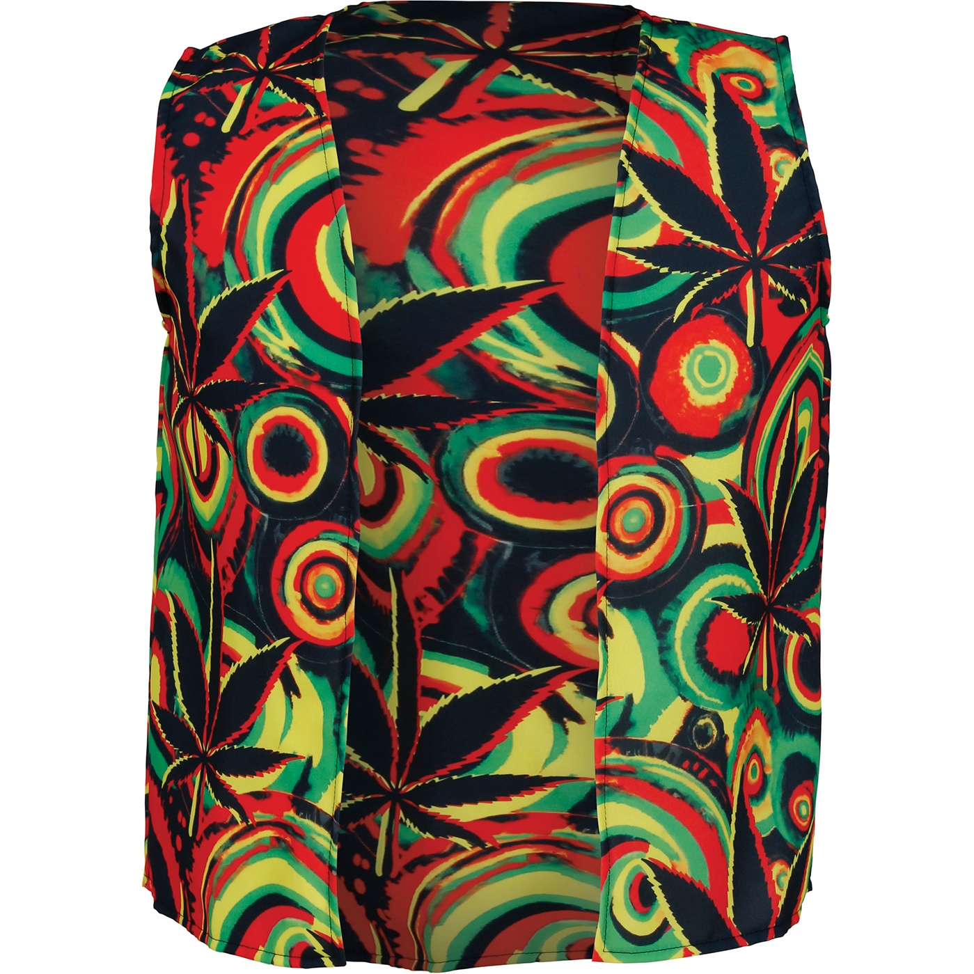 Gilet con stampa dai colori vivaci in stile Jamaica che cattura l'attenzione. Presenta un taglio aperto senza maniche, facile da indossare e perfetto da sovrapporre a qualsiasi capo. Realizzato in poliestere leggero per garantire comfort e una caduta fluida, è il complemento ideale per divertirsi con stile. Perfetto come accessorio d'impatto per carnevale e feste a tema.