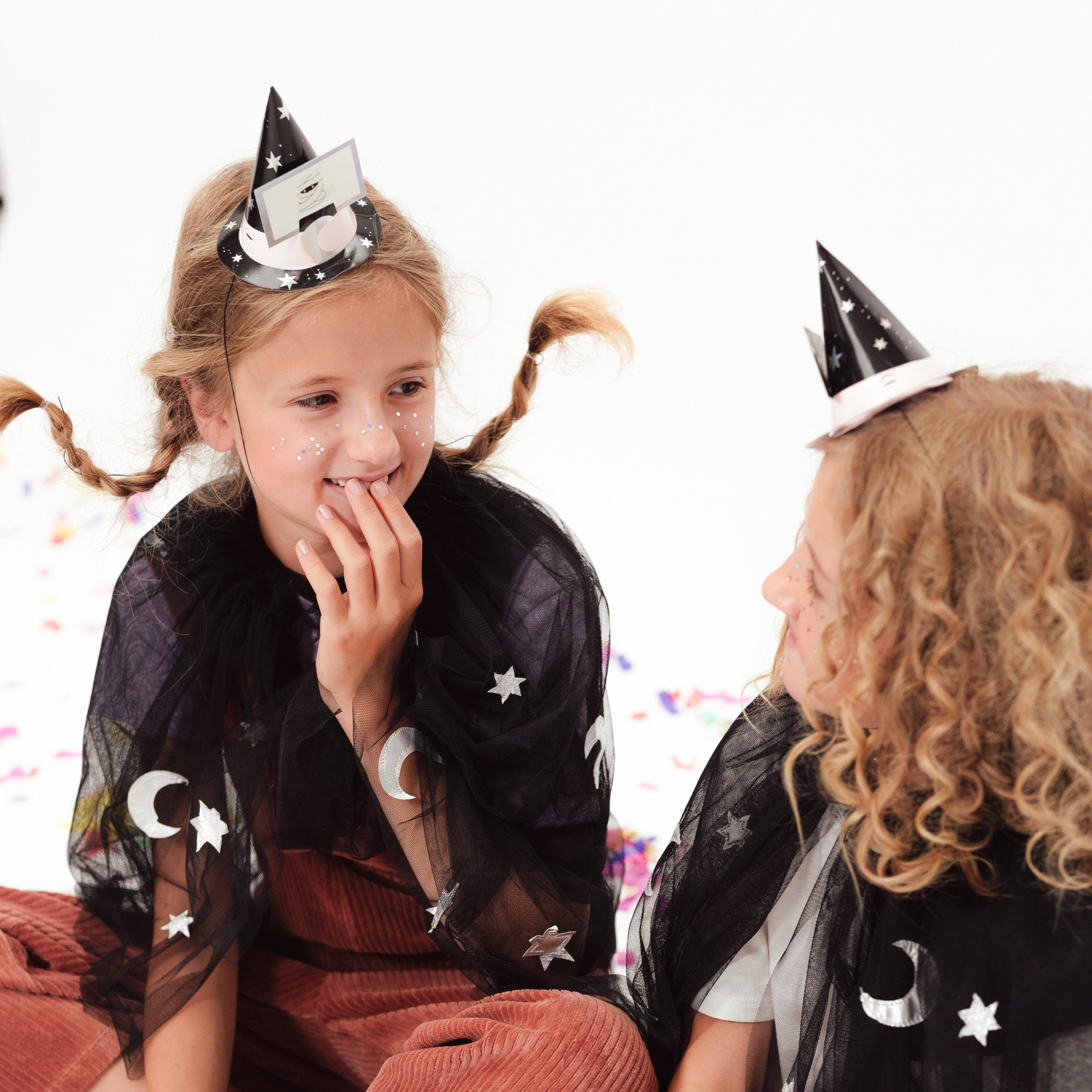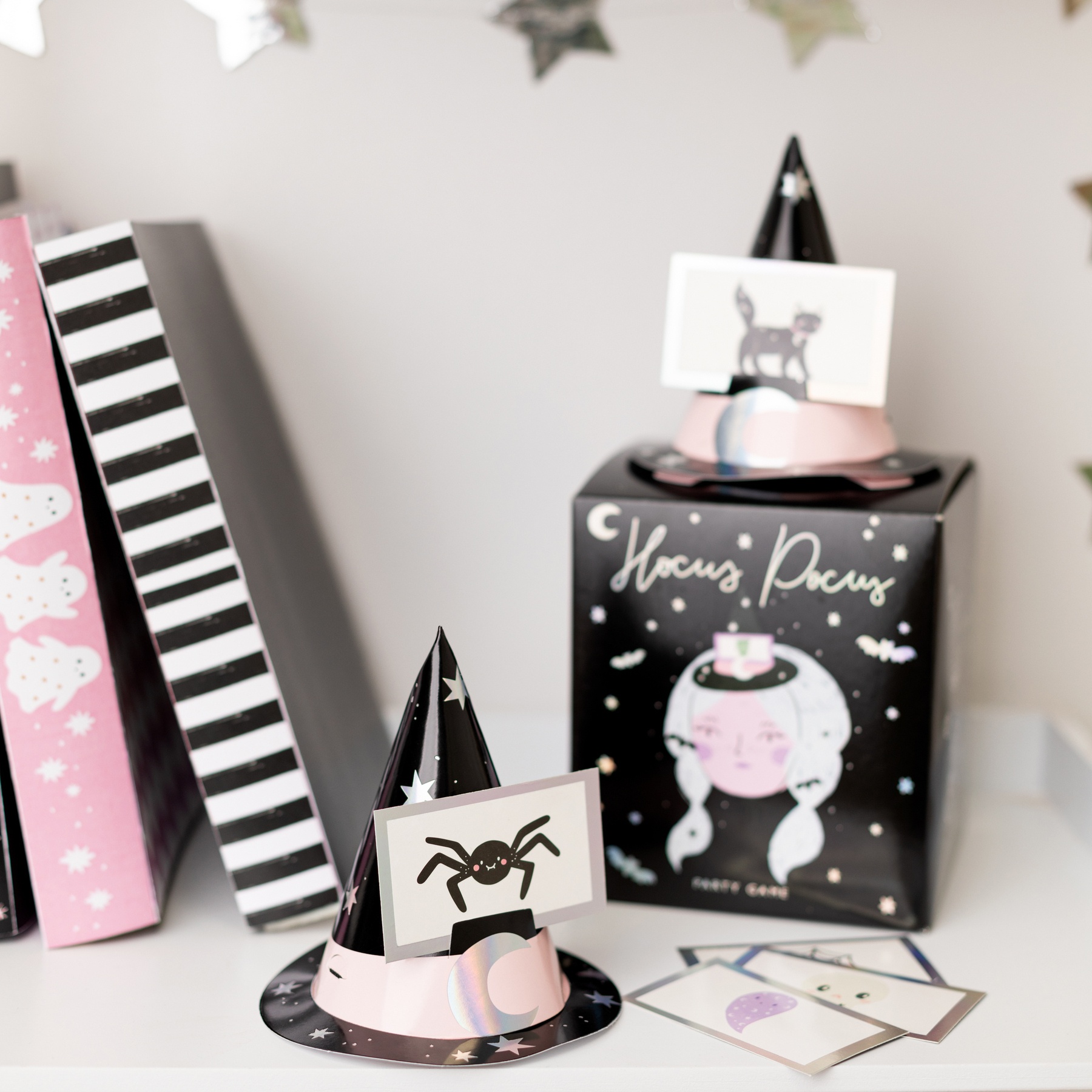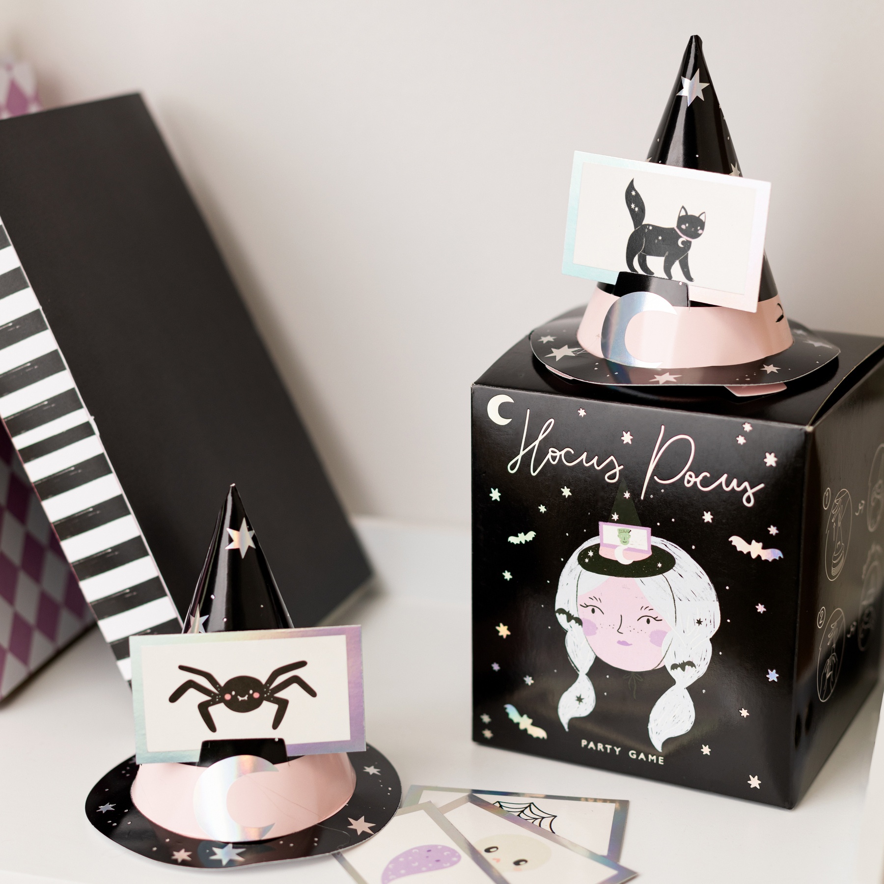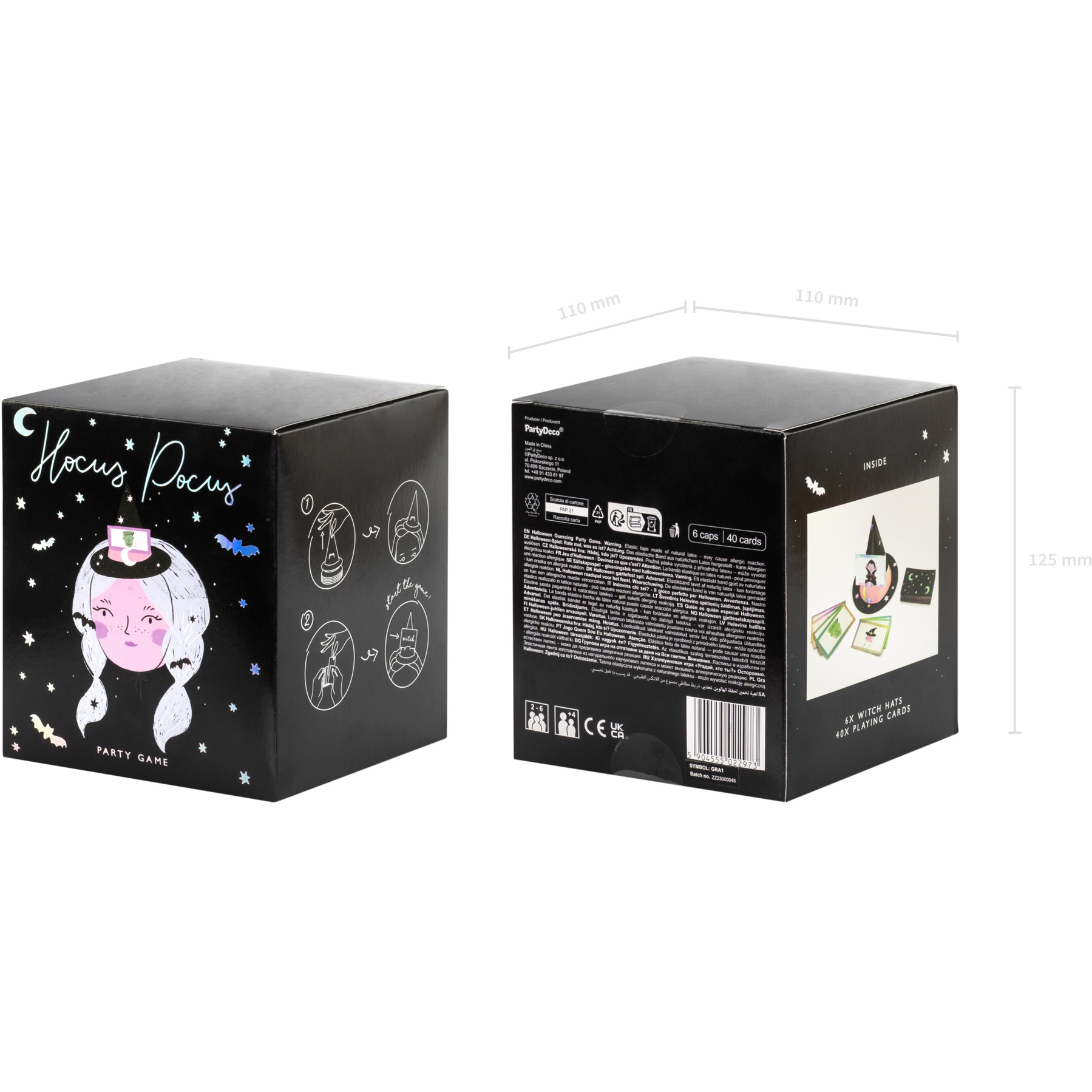 • Include: 6 cappelli da strega con elastico e 40 carte illustrate.