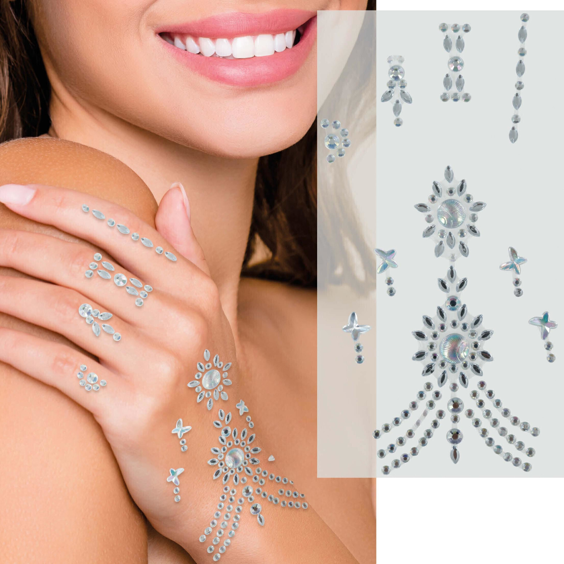 Gioielli adesivi per la mano con brillantini argentati