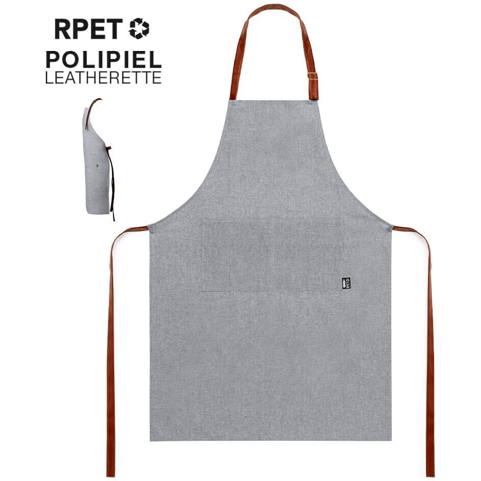 - Grembiule della linea nature in materiale RPET, realizzato da plastica riciclata.