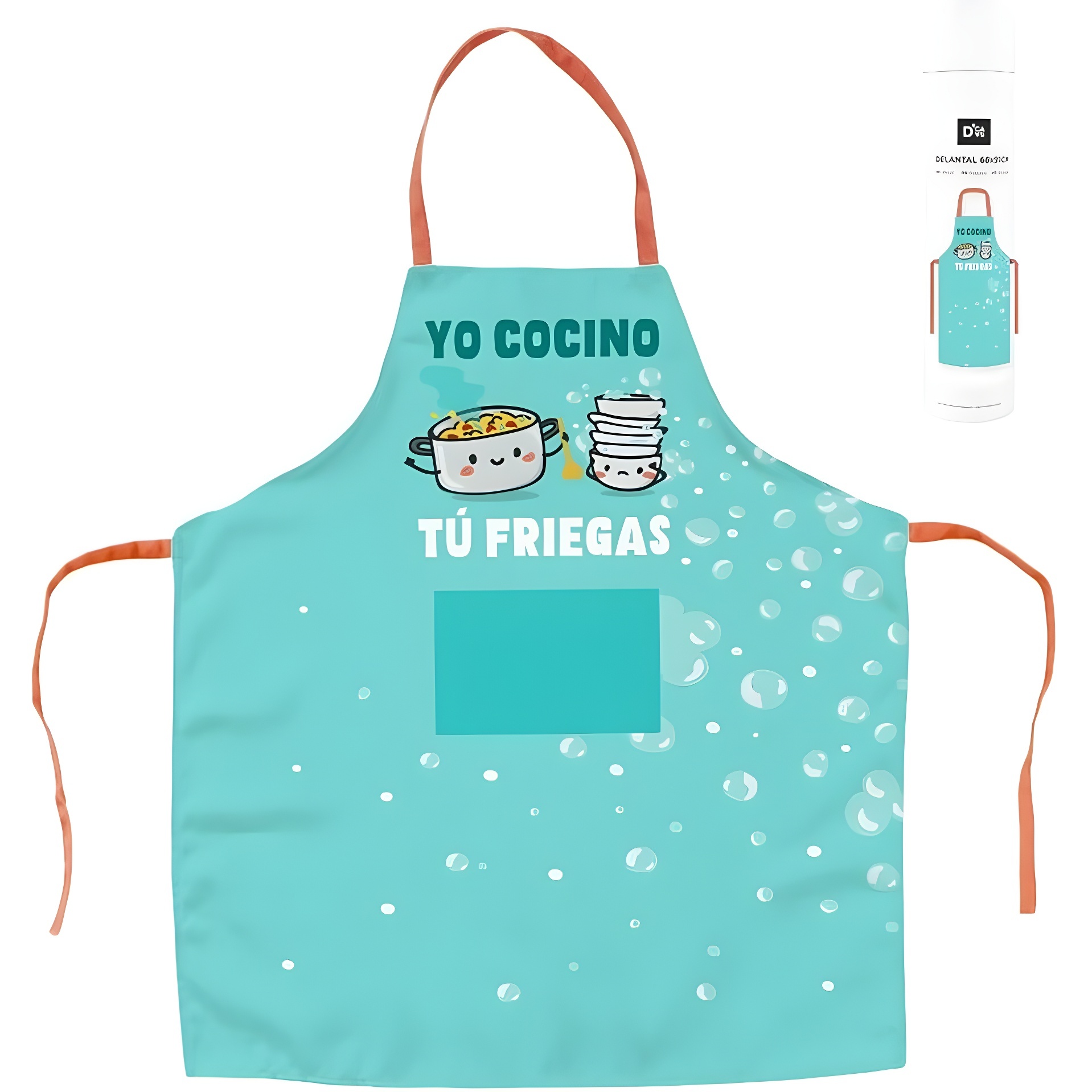 - Divertente slogan "Io cucino, tu lavi" che stimola il gioco e le risate.