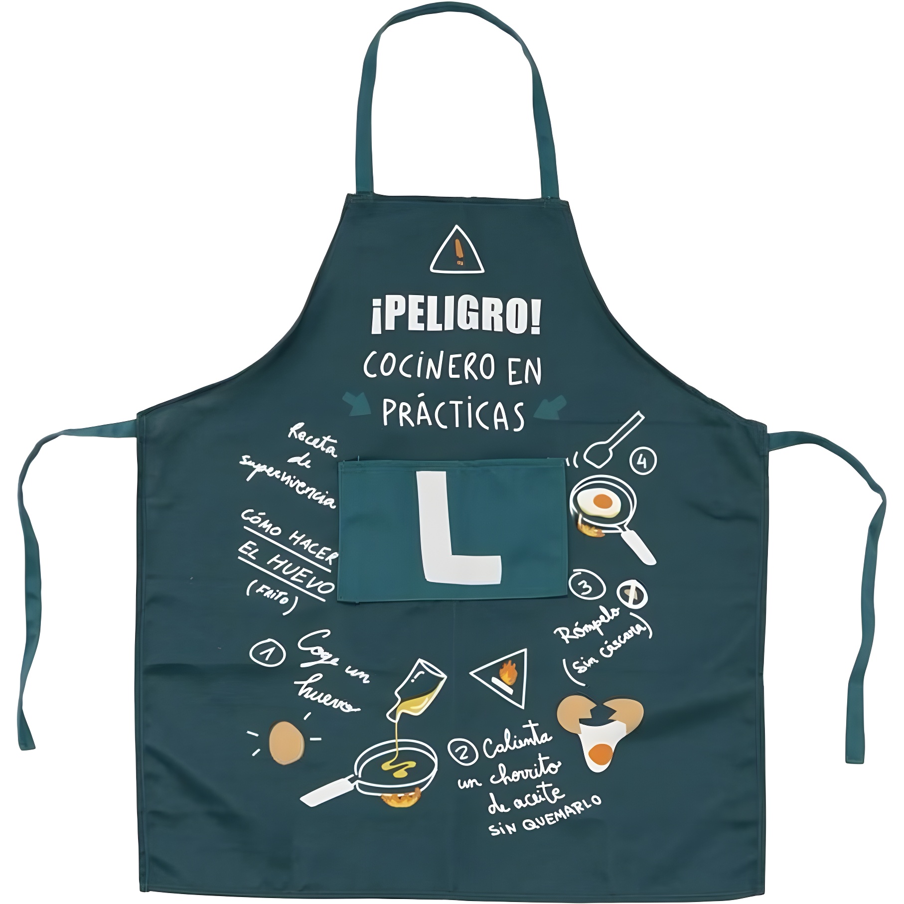 Grembiule divertente per bambini con la scritta "Pericolo! Cuoco in prova", pensato per stimolare l'immaginazione e la passione per la cucina fin dalla tenera età.
