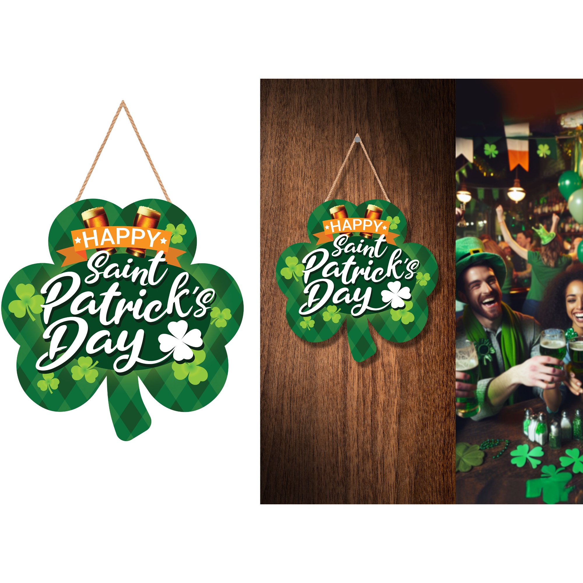 Include una corda per appenderla e una finitura che valorizza i verdi tradizionali, ideale per pub, bar e feste di San Patrizio.