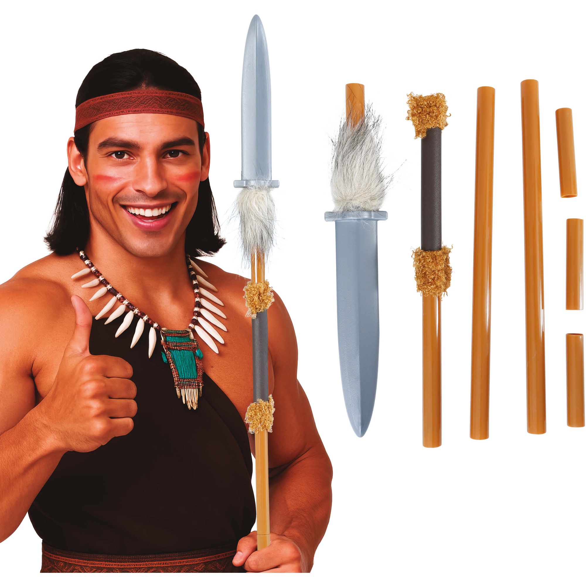 Lancia smontabile in stile indiano pensata per completare costumi e scenografie. Il montaggio semplice e il design leggero la rendono comoda da portare in sfilate, carnevali e feste a tema. Realizzata in PVC sicuro, offre un aspetto realistico senza bordo tagliente. Ideale per completare look tradizionali o per rappresentazioni teatrali.