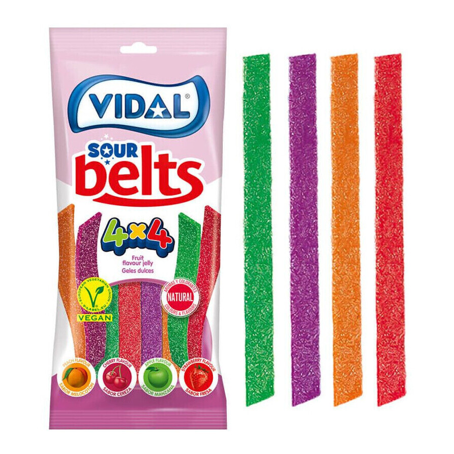 - Rivestimento acido e intenso sapore di fragola.