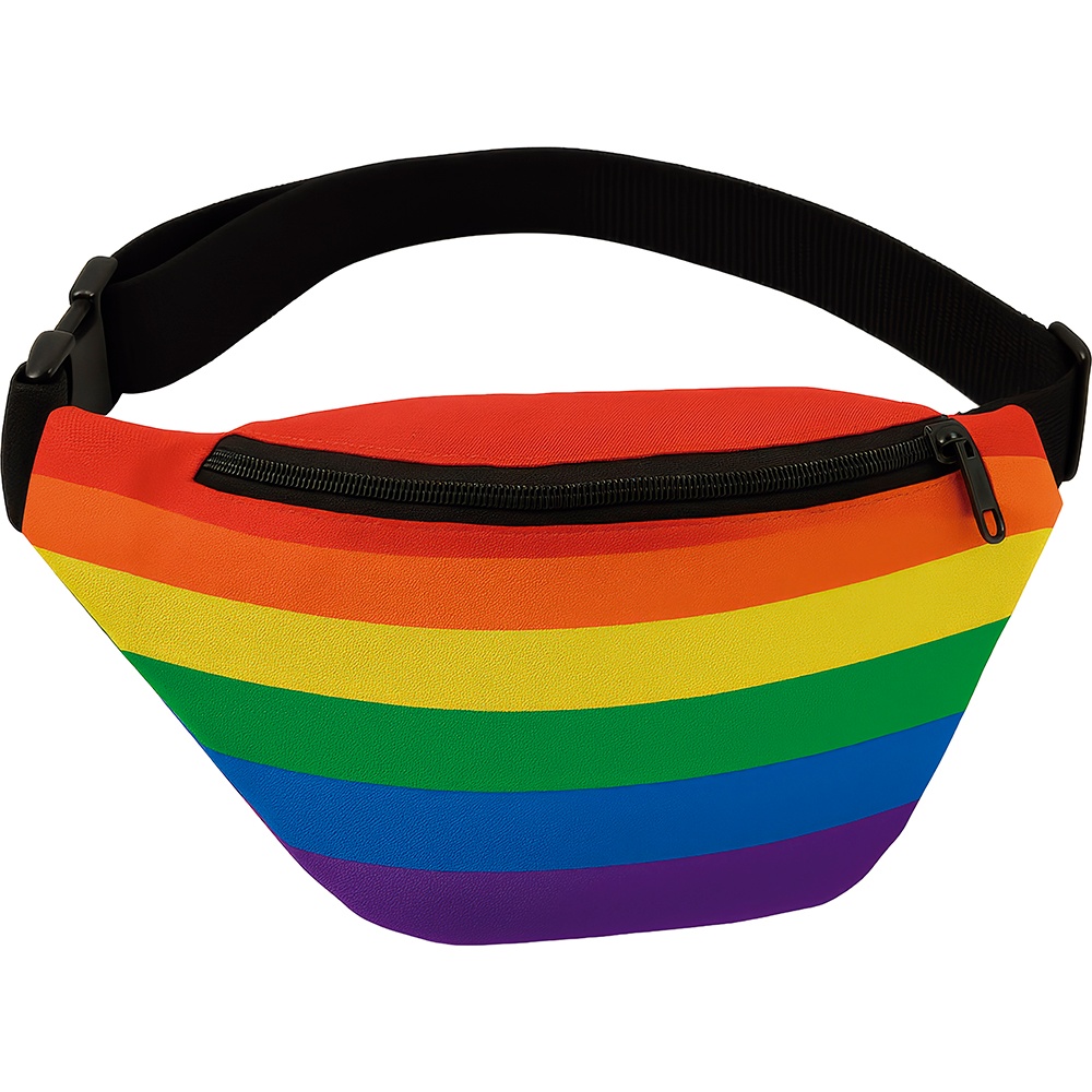 Marsupio arcobaleno dal design vivace e colori intensi, ideale per portare l'essenziale con stile a festival, concerti ed eventi. Design unisex e compatto che unisce estetica e funzionalità. Tracolla regolabile con chiusura rapida per una vestibilità comoda e sicura, e tasca principale con cerniera per smartphone, portafoglio e chiavi. Leggero e pratico per tenere le mani libere mentre ti godi l'atmosfera.