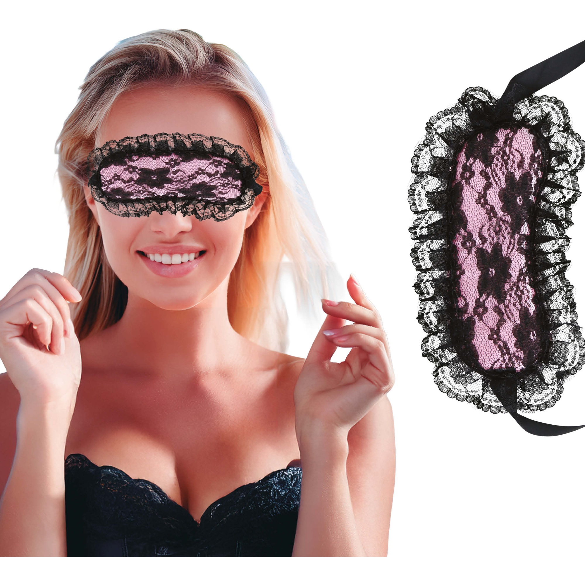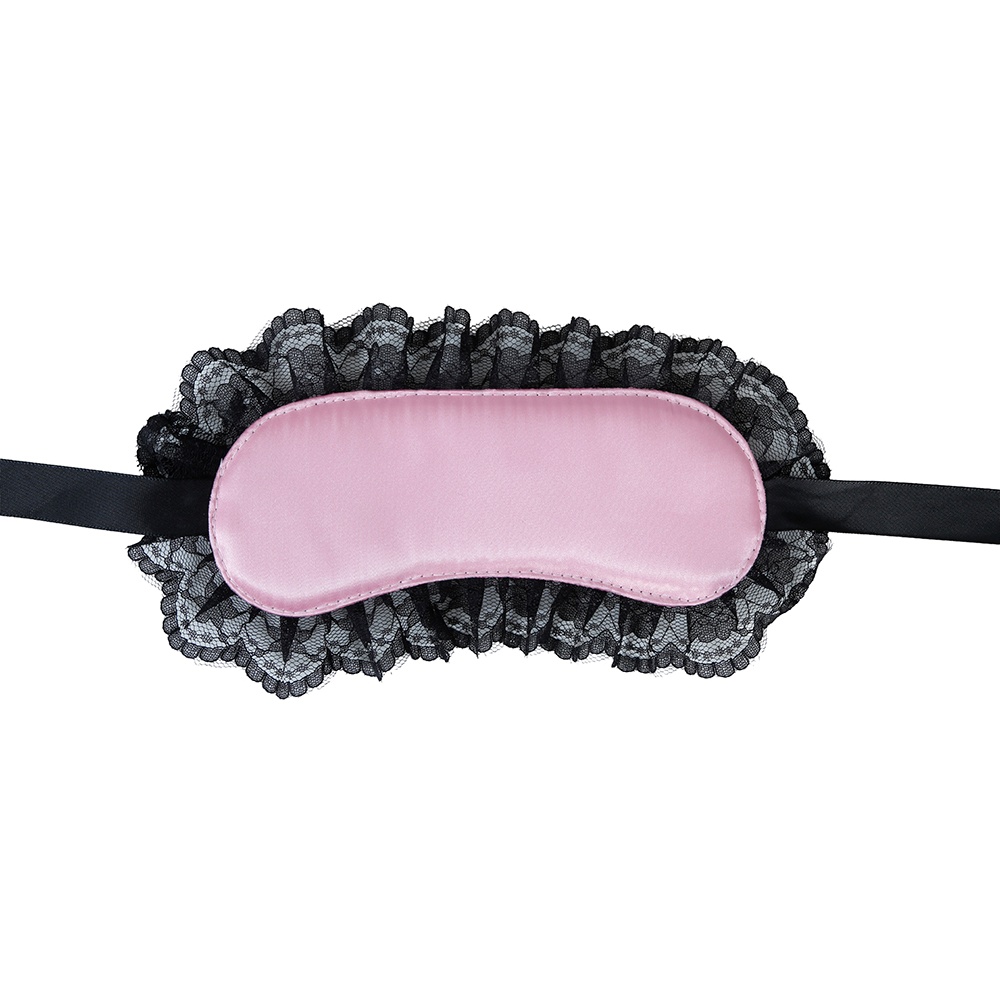 Mascherina sensuale rosa con raffinato pizzo nero che mette in risalto lo sguardo e aggiunge un tocco seducente ai tuoi momenti intimi.