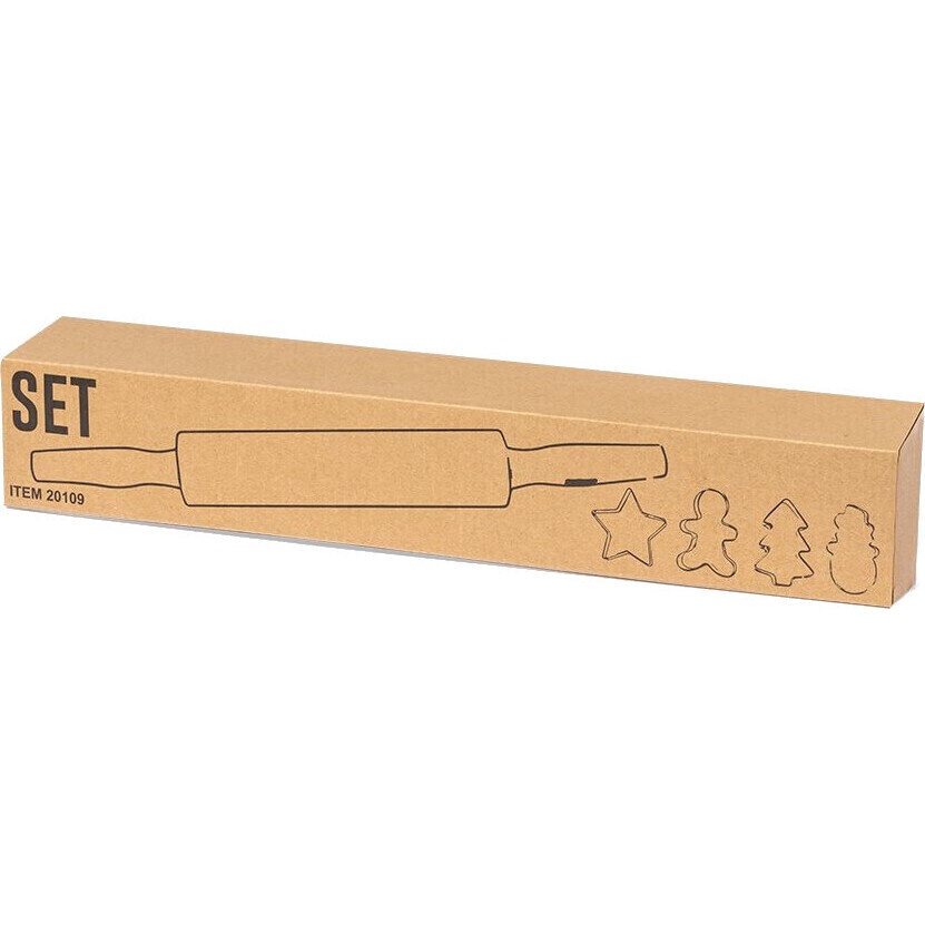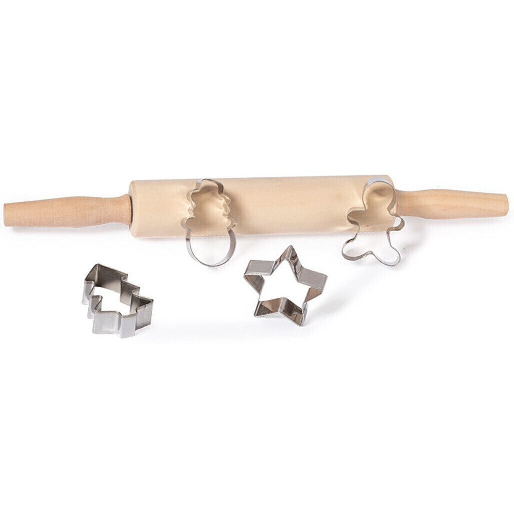 - Set da forno con stampi natalizi in acciaio inox e mattarello in resistente legno naturale.