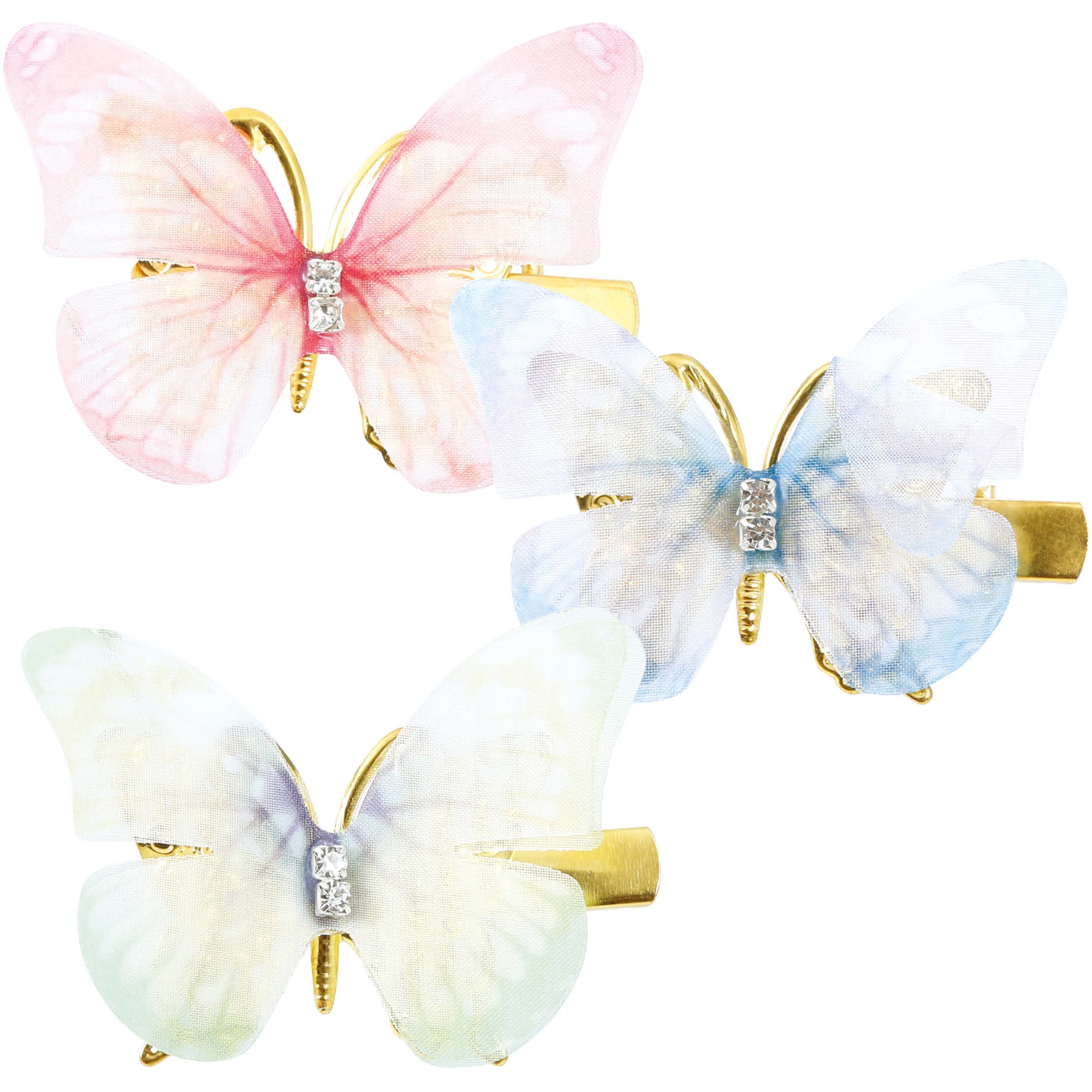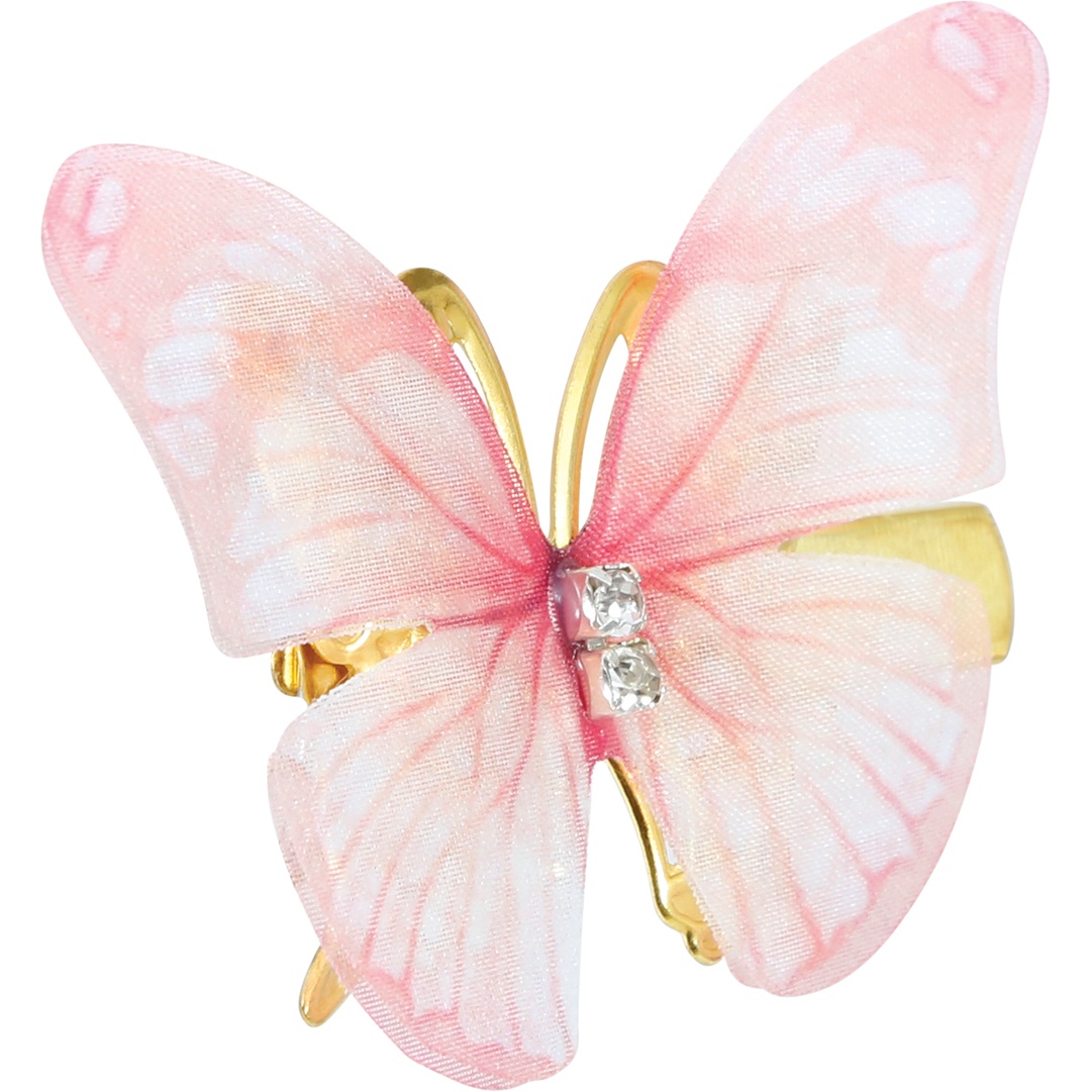 Deliziose mollette con motivo a farfalla in colori pastello, pensate per bambine e look infantili. Ideali per aggiungere un tocco dolce e femminile a pettinature semplici come code, semiraccolti o ciuffi sciolti. Facili e veloci da posizionare, donano un dettaglio elegante sia per l'uso quotidiano sia per feste e occasioni speciali.