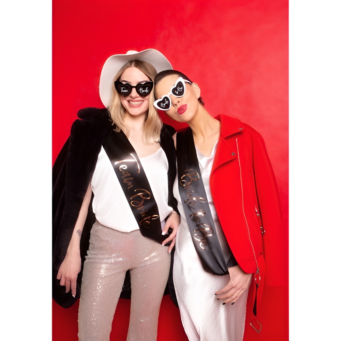 - Stile festoso: scritta 'Team Bride' in contrasto bianco sulle lenti nere per un effetto moderno e d'impatto.