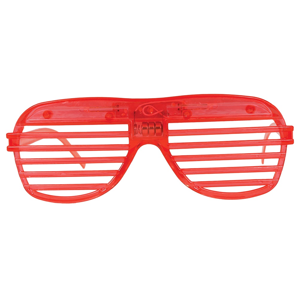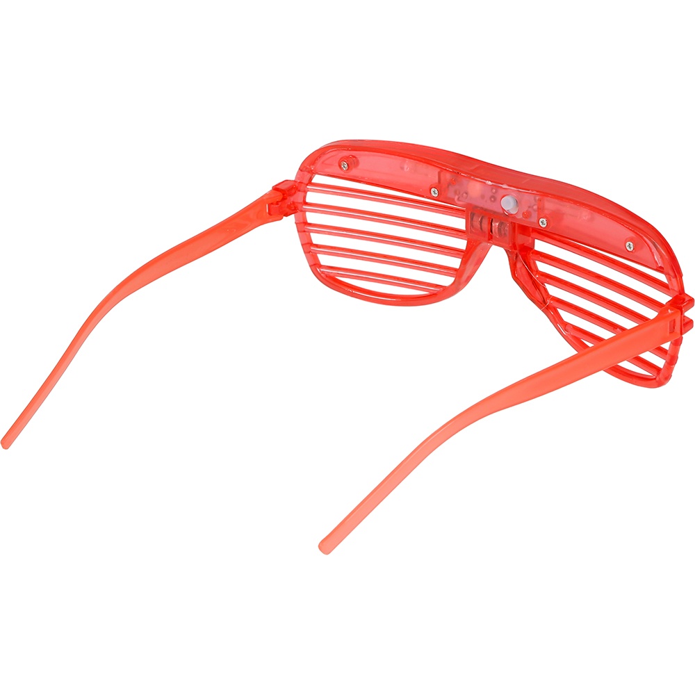 Occhiali con design shutter a griglia e LED integrati che creano un effetto luminoso vivace e colorato.