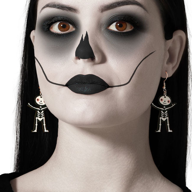 • Orecchini a forma di scheletro umano. Accessorio perfetto per un look macabro.