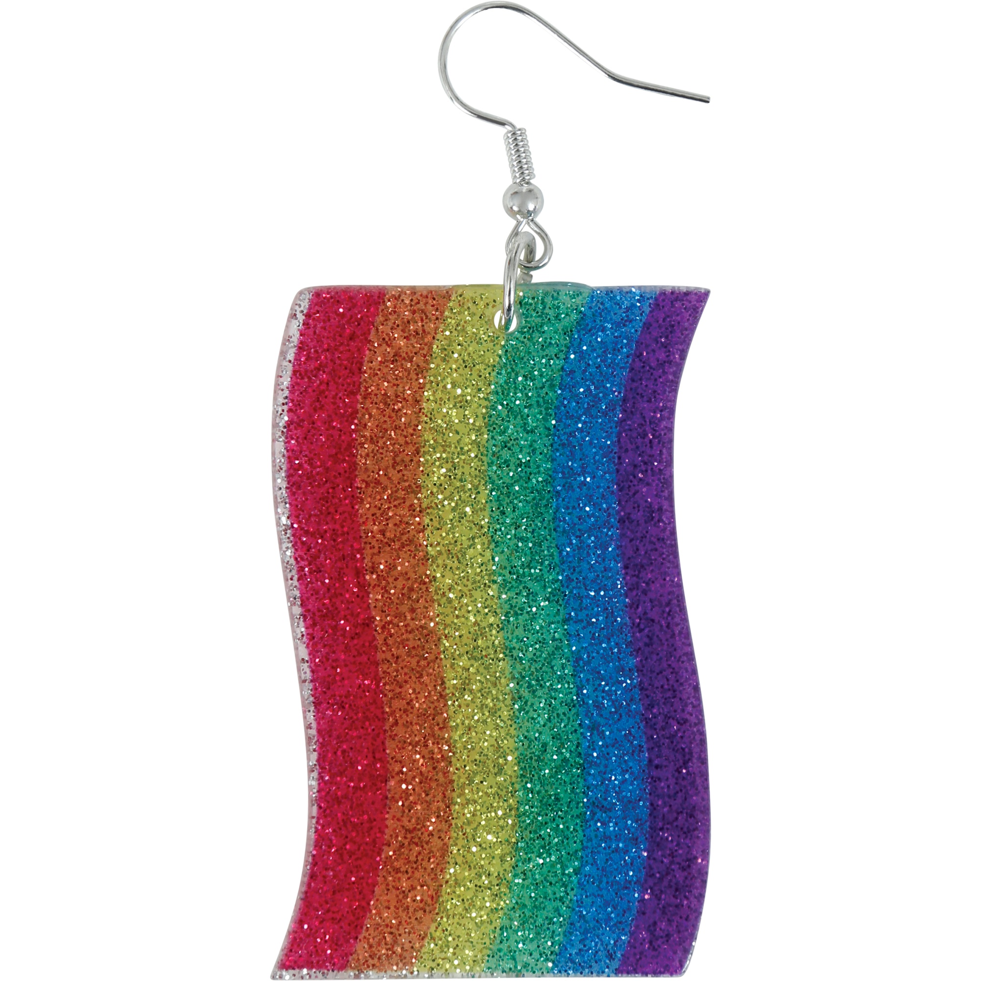 Orecchini vistosi con strisce dai colori arcobaleno e finitura con brillantini. Il design ondulato dona movimento e un tocco di allegria a qualsiasi look da festa. Sono leggeri e confortevoli, pensati per essere indossati a lungo senza fastidi. Il gancio metallico facilita l'applicazione e garantisce una tenuta stabile.