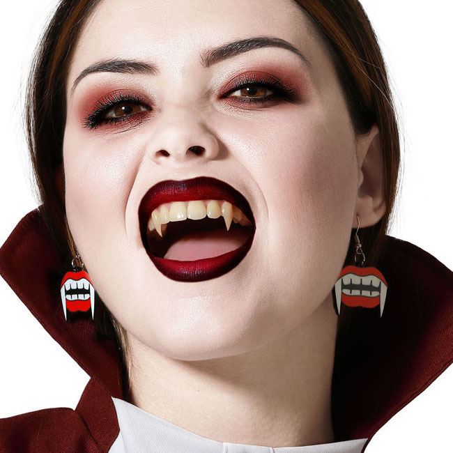 • Paio di orecchini rossi con design elegante, ideali per costumi da vampira.