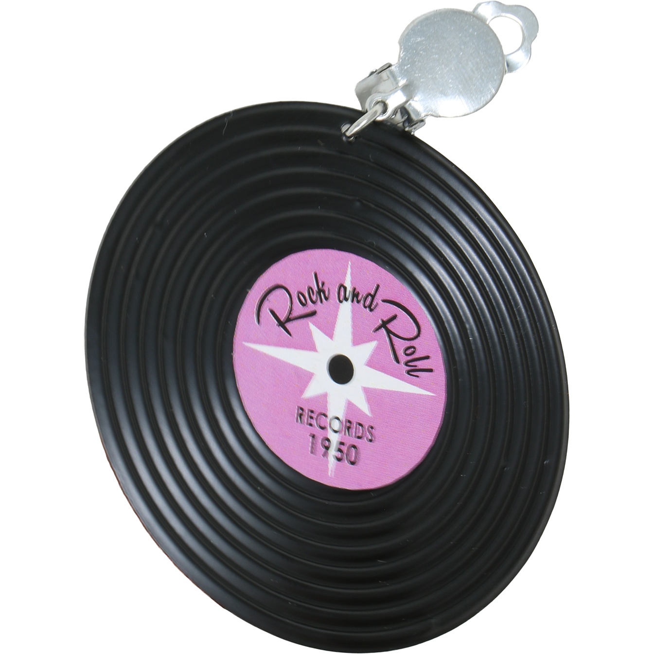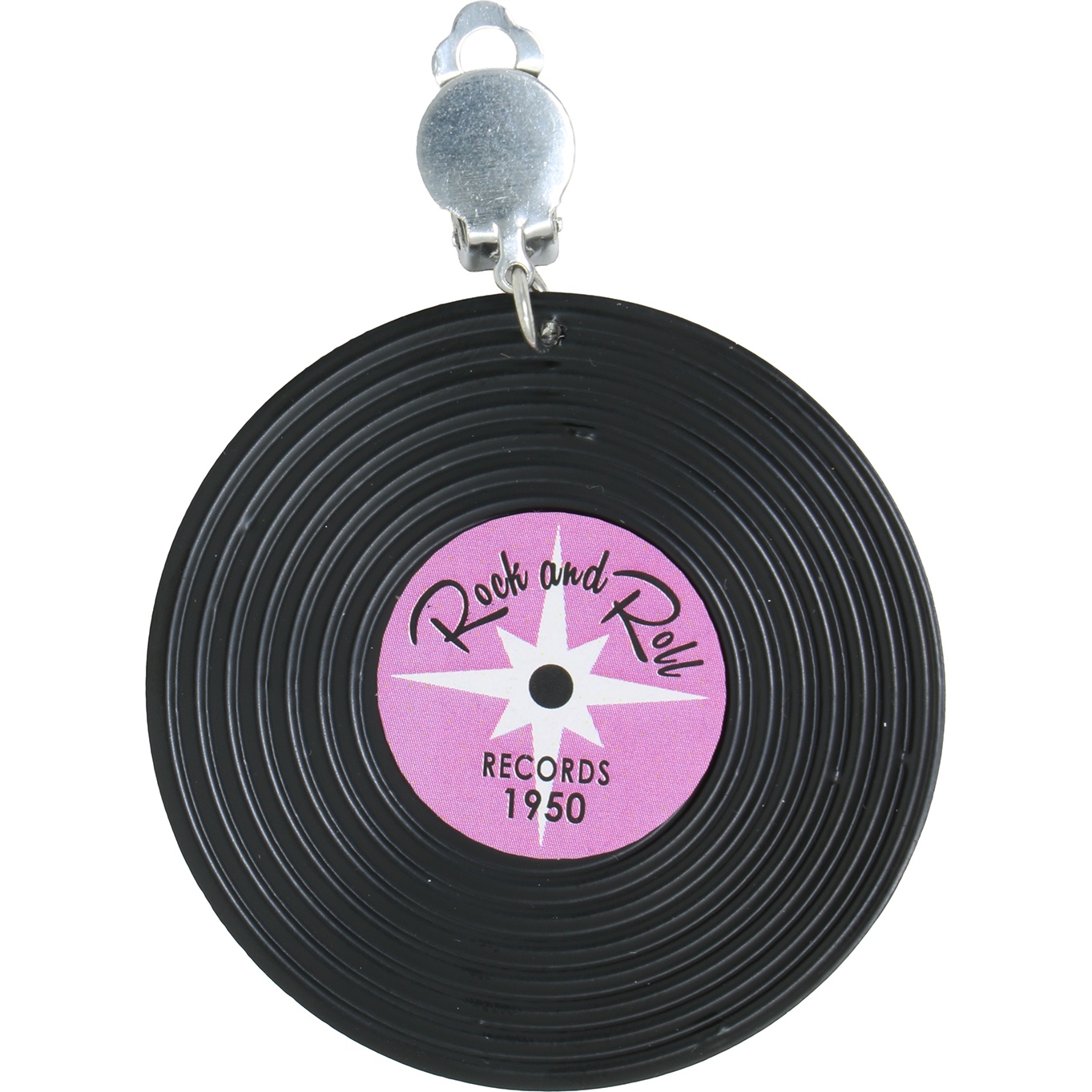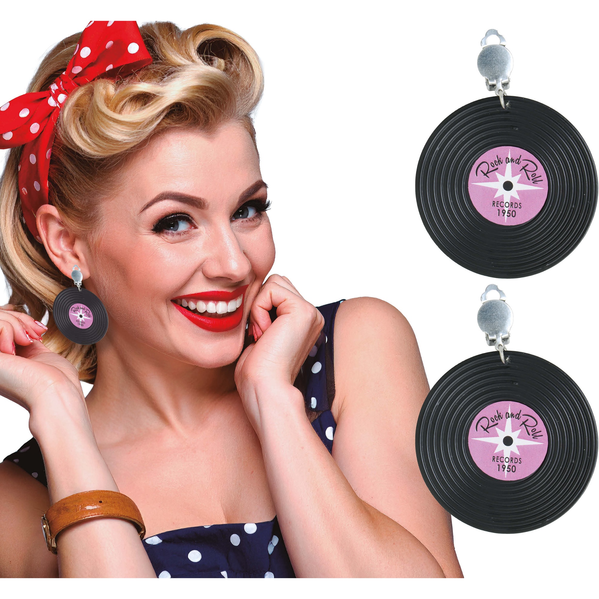 Orecchini a disco in vinile da 5 cm. Design retrò ispirato all'estetica pin-up e rockabilly degli anni '50. Leggeri e vistosi, donano un tocco vintage e divertente a qualsiasi look. Realizzati in PVC con un'etichetta centrale decorativa che ricrea l'estetica di un singolo classico. La dimensione compatta li rende visibili senza risultare pesanti, come mostrato in foto.
