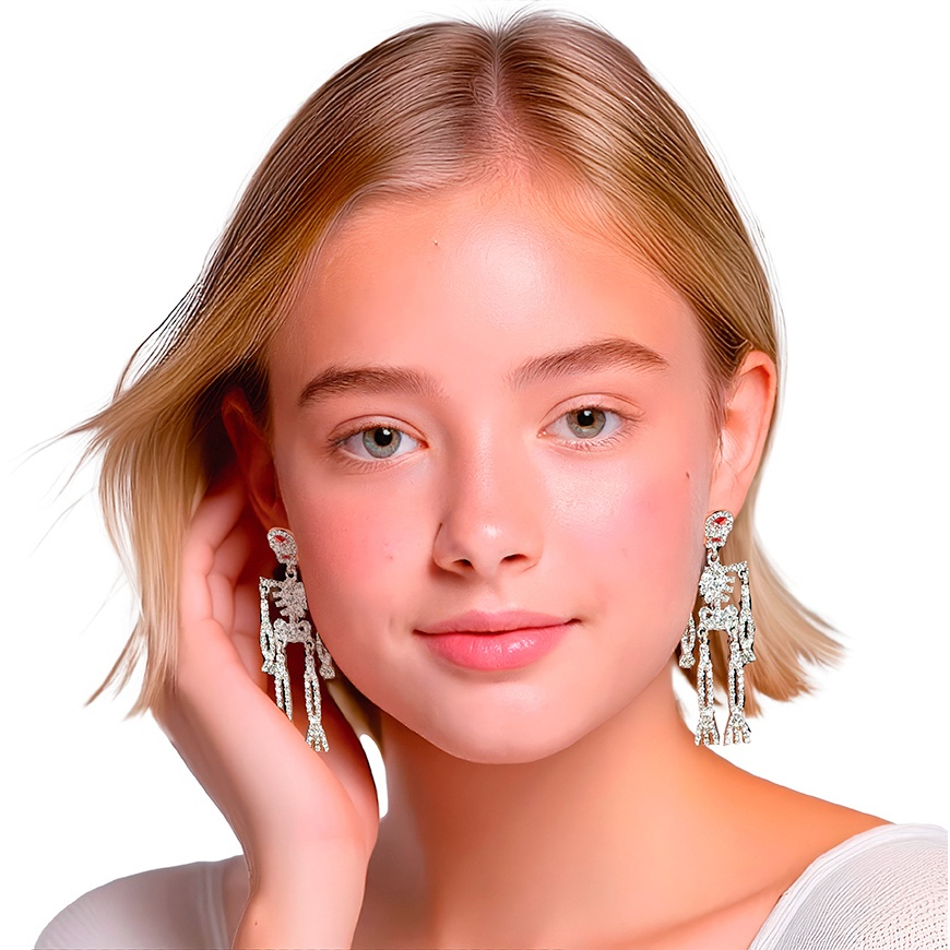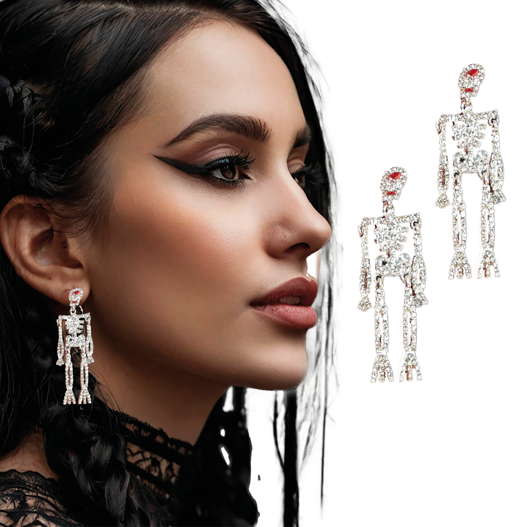 Orecchini a forma di scheletro luminosi di 6,5 cm - 1 paio