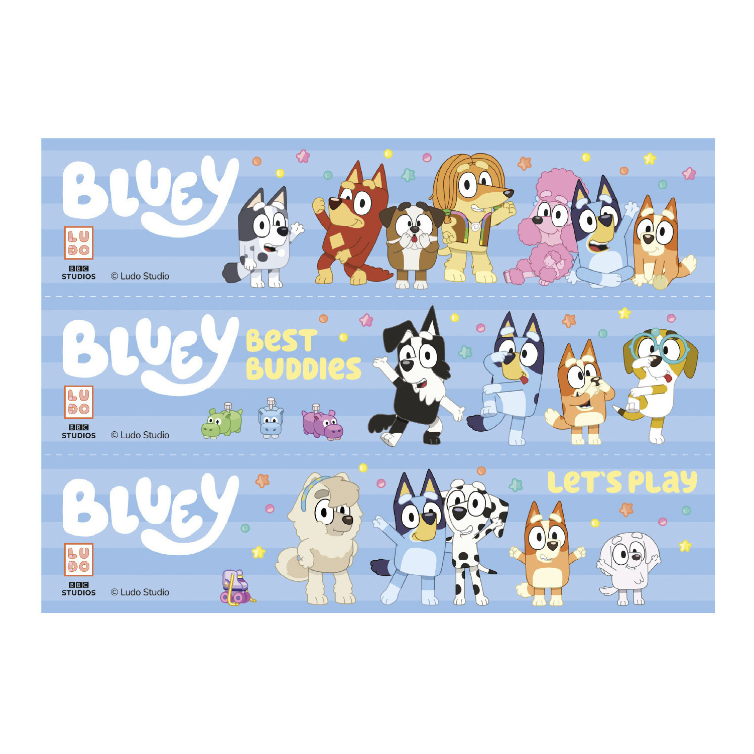 Ostia commestibile di Bluey per bordo di torta 21 x 4,95 cm - 3 pezzi