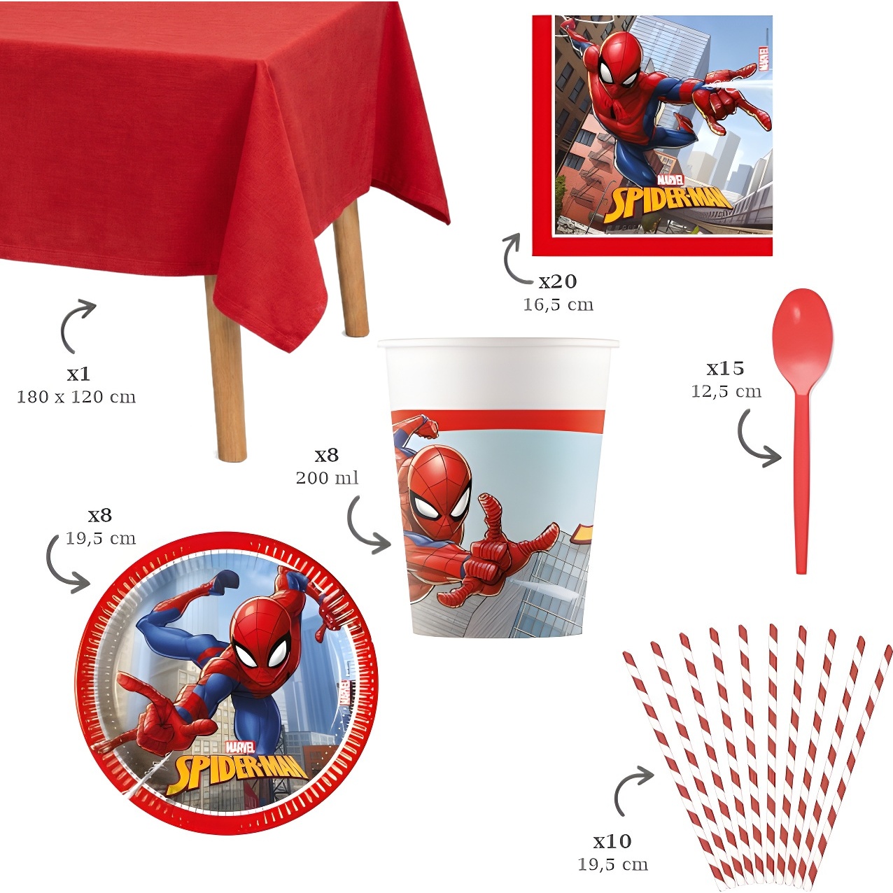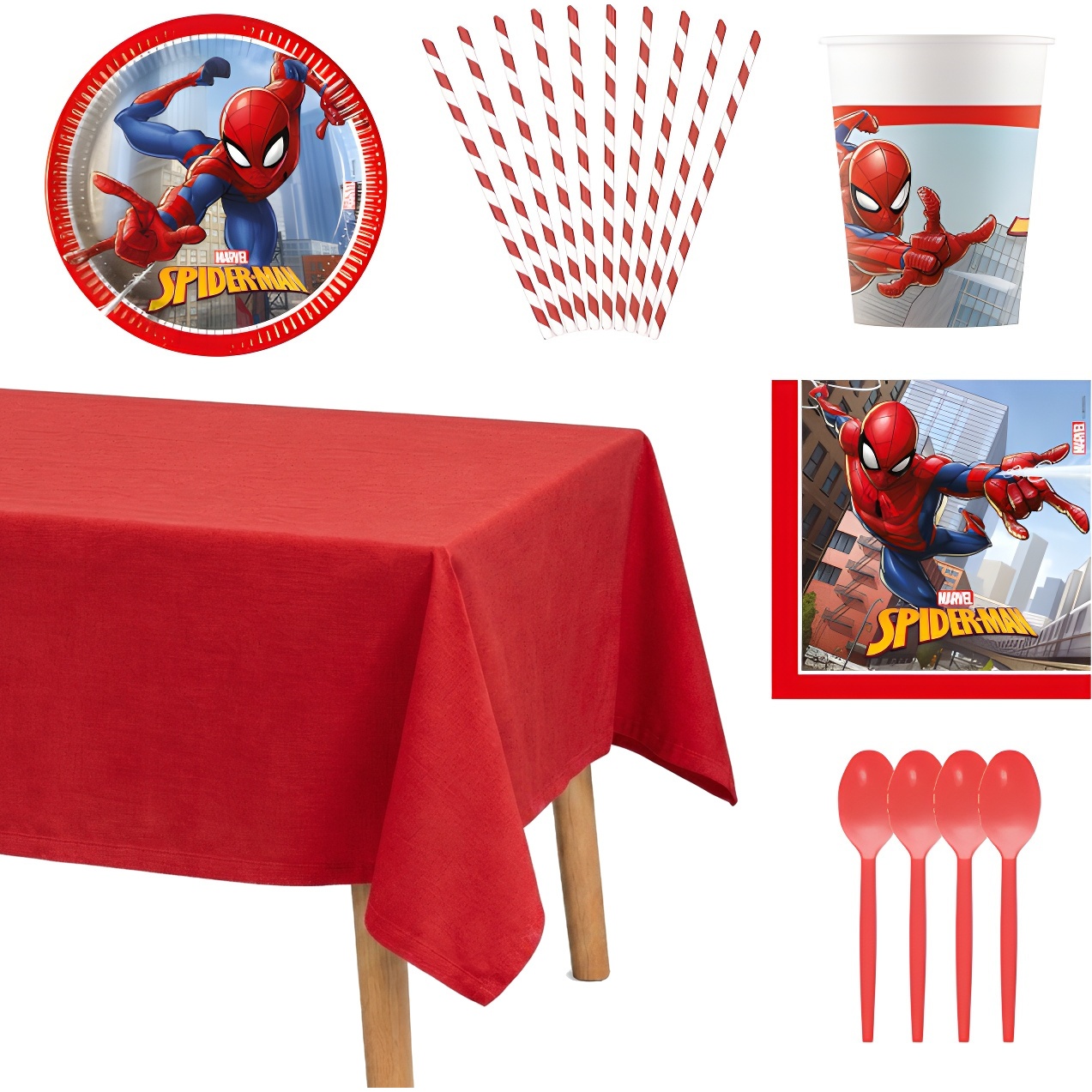 Set completo con tutto il necessario per una festa a tema Spiderman.