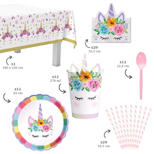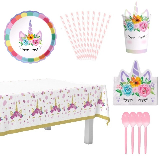È un pacchetto completo di tutto il necessario per godersi una festa a tema unicorno.