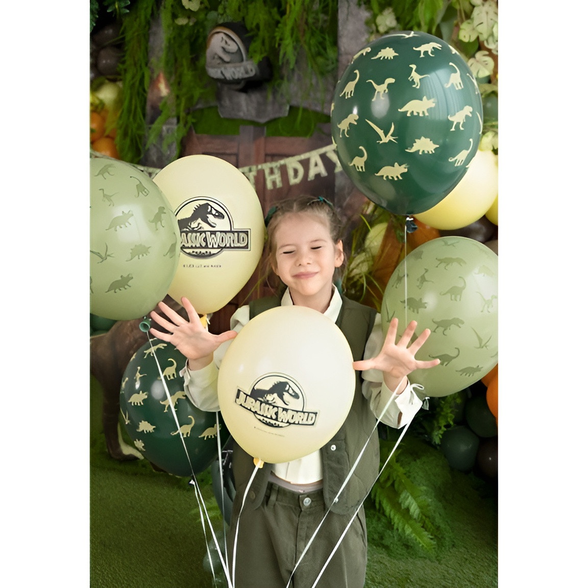 Jurassic World palloncini resistenti con divertenti disegni di dinosauri che donano energia e colore a qualsiasi festa per bambini. Presentano stampe nitide del logo e delle silhouette dei dinosauri in toni pastello per una decorazione armoniosa. Realizzati in lattice elastico che garantisce un gonfiaggio uniforme e buona durata durante la celebrazione. Diametro di circa 30 cm, perfetti per ghirlande, centrotavola e angoli a tema.