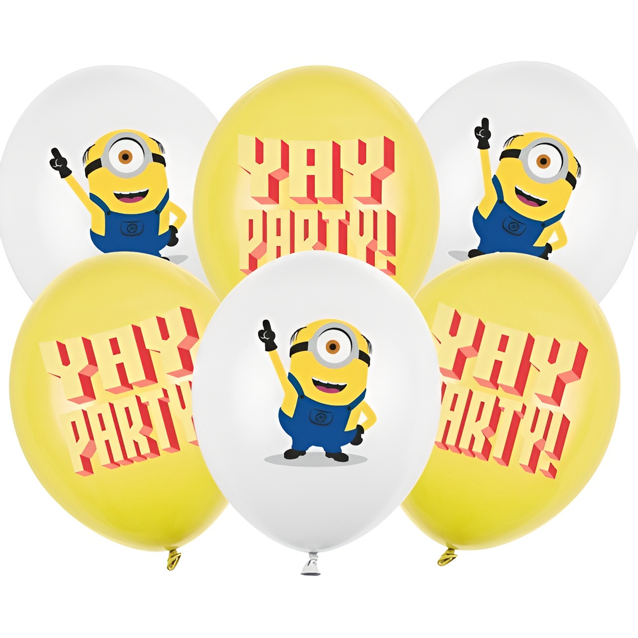 Strong Balloons Minions sono palloncini stampati fronte/retro con i popolari personaggi Minions e la scritta "Yay Party!" in colori pastello. Ogni palloncino ha un diametro di 30 cm da gonfio e presenta un design allegro nei toni del bianco e del giallo miele, perfetto per aggiungere divertimento a qualsiasi festa per bambini. Ideali per decorare compleanni, creare centrotavola e rendere più vivaci gli angoli della festa con un tocco riconoscibile e giocoso.