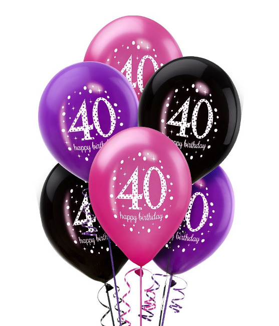 Confezione con assortimento di palloncini in lattice nei colori nero, viola e fucsia, con stampa del numero in bianco. Perfetti per decorare lo spazio della tua festa di compleanno.