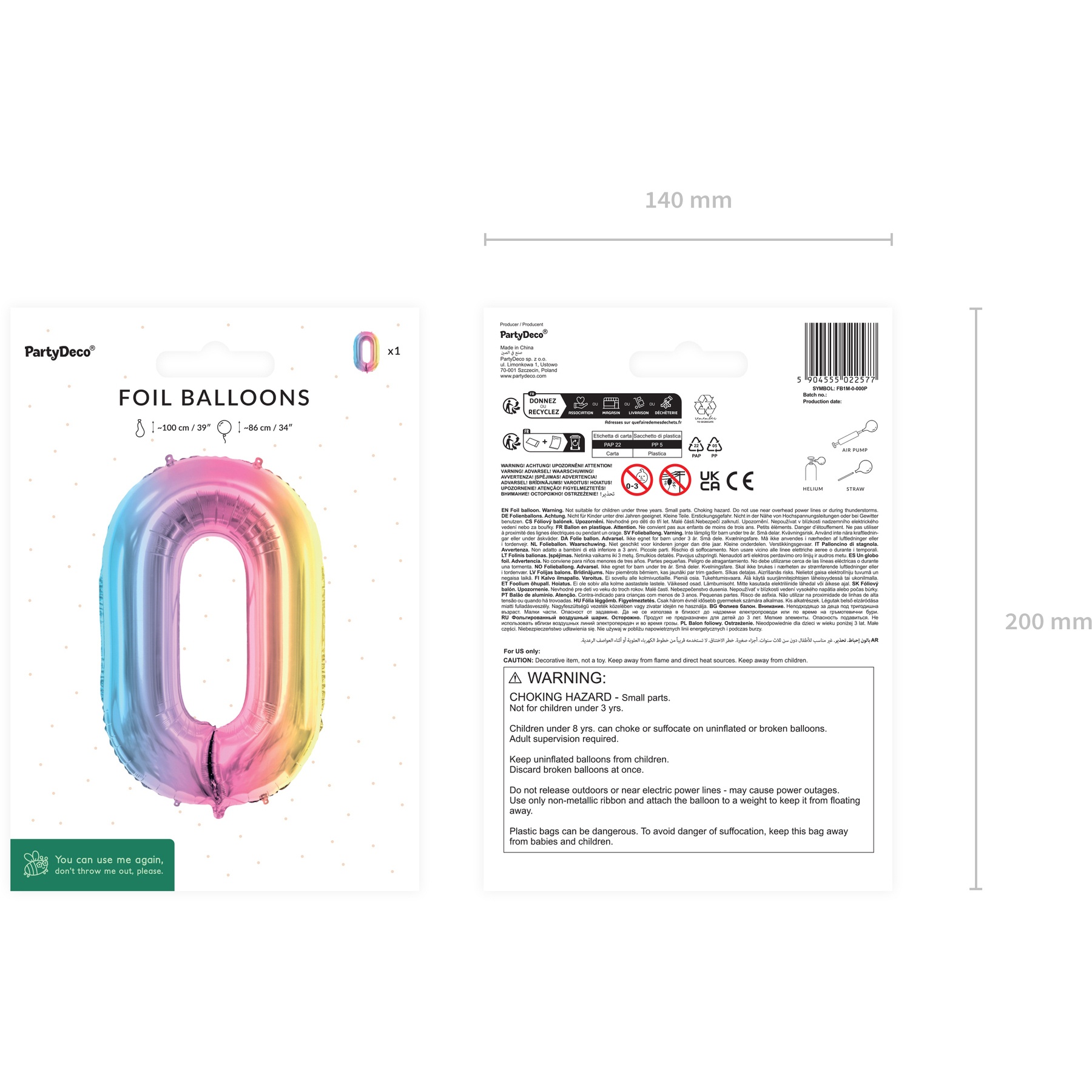 Palloncino arcobaleno pastello numero 86 cm - PartyDeco - 1 pz.