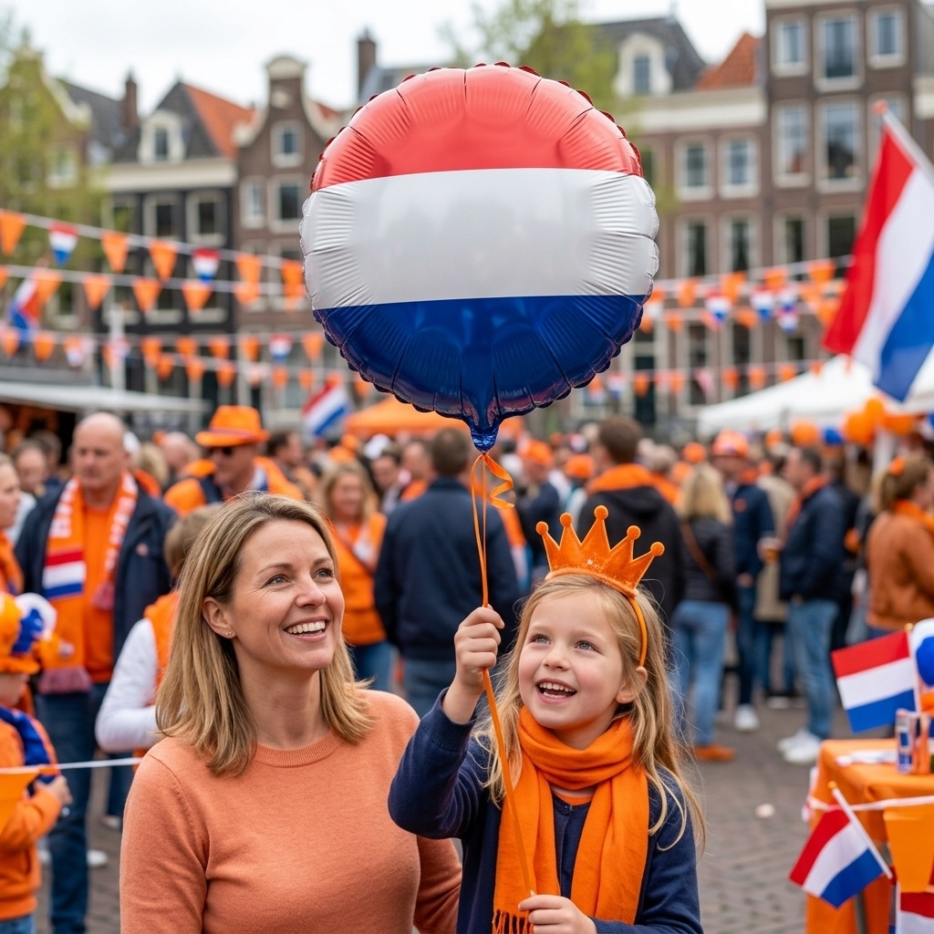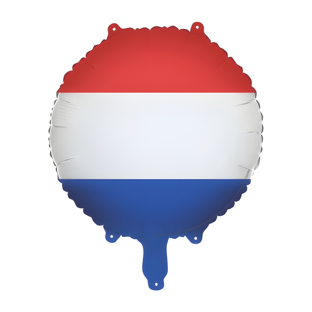 Palloncino in foil con la grafica della bandiera dei Paesi Bassi, ideale per celebrazioni nazionali ed eventi a tema. Diametro approssimativo prima del gonfiaggio 45 cm (18'') e dopo il gonfiaggio circa 35 cm (14'').