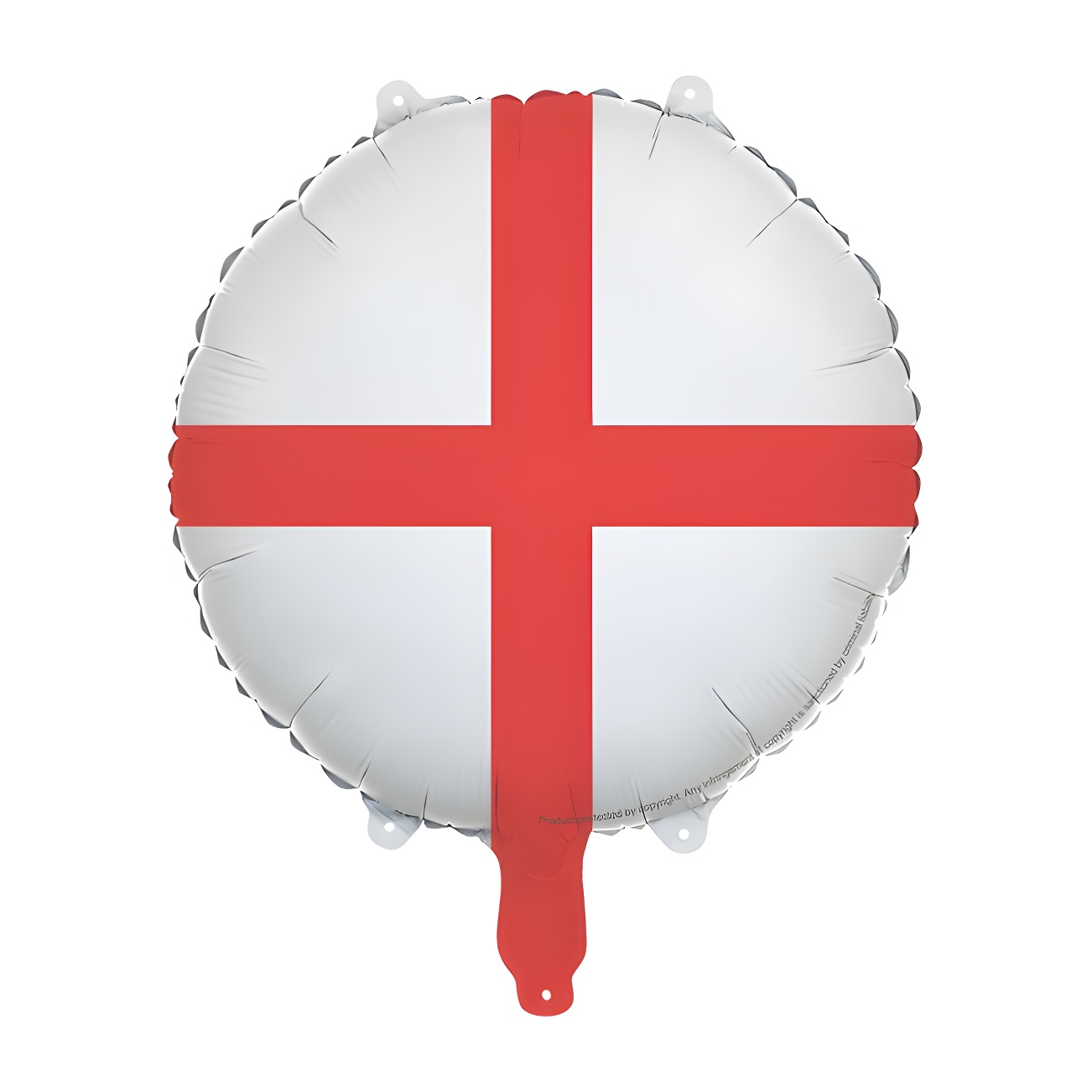Palloncino in foil con l'iconica Croce di San Giorgio, pensato per mostrare il sostegno alla nazionale e ai tifosi inglesi. Diametro approssimativo prima del gonfiaggio 45 cm (18''), circa 35 cm (14'') dopo il gonfiaggio. Adatto al gonfiaggio ad aria o a elio, con valvola autosigillante e ganci integrati per un fissaggio e una decorazione semplici.
