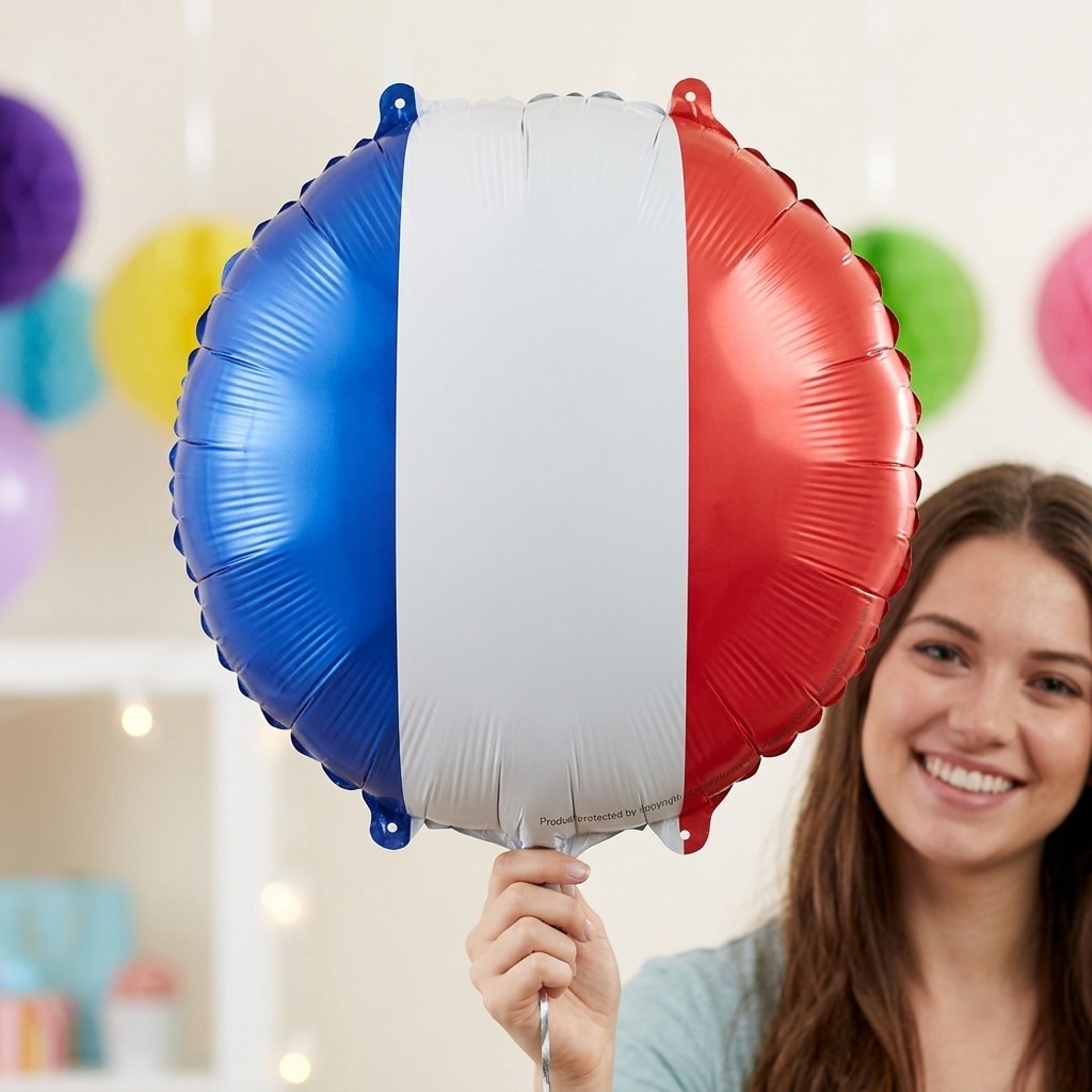 Palloncino in foil con i colori della bandiera francese, perfetto per aggiungere un tocco festoso a feste ed eventi sportivi.