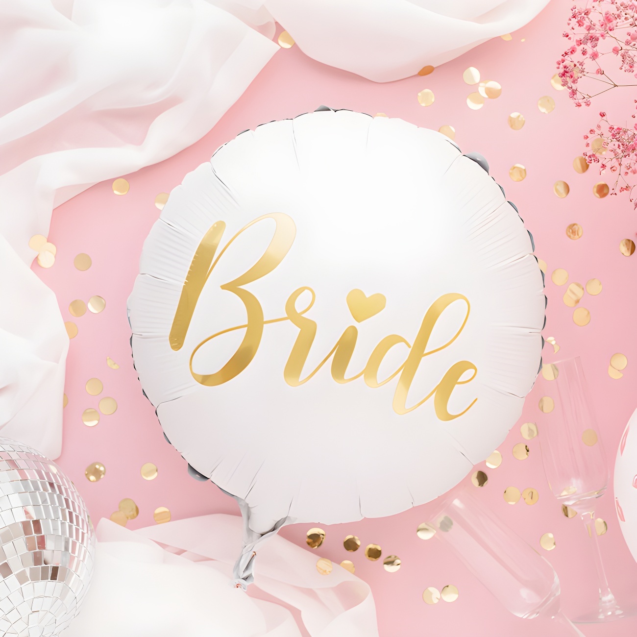 Un bellissimo palloncino con la scritta "Bride" al centro, perfetto per decorare o da regalare alla sposa.