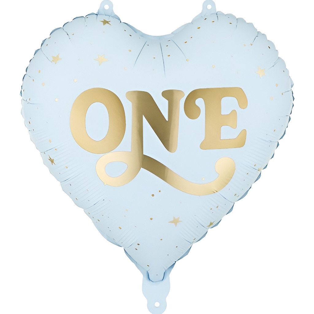 Palloncino in foil a forma di cuore, colore rosa chiaro con la scritta dorata "ONE", ideale per donare un tocco elegante alla decorazione del primo compleanno.