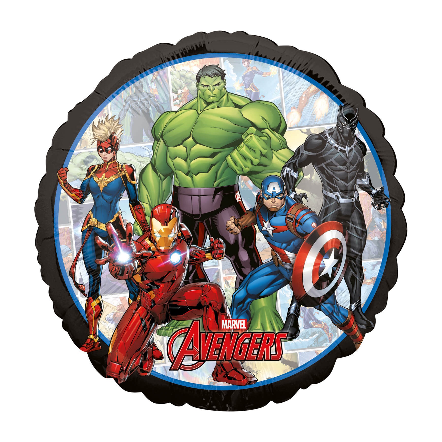 Palloncino foil ufficiale degli Avengers con grafica a colori che ritrae Hulk, Iron Man e Capitan America.