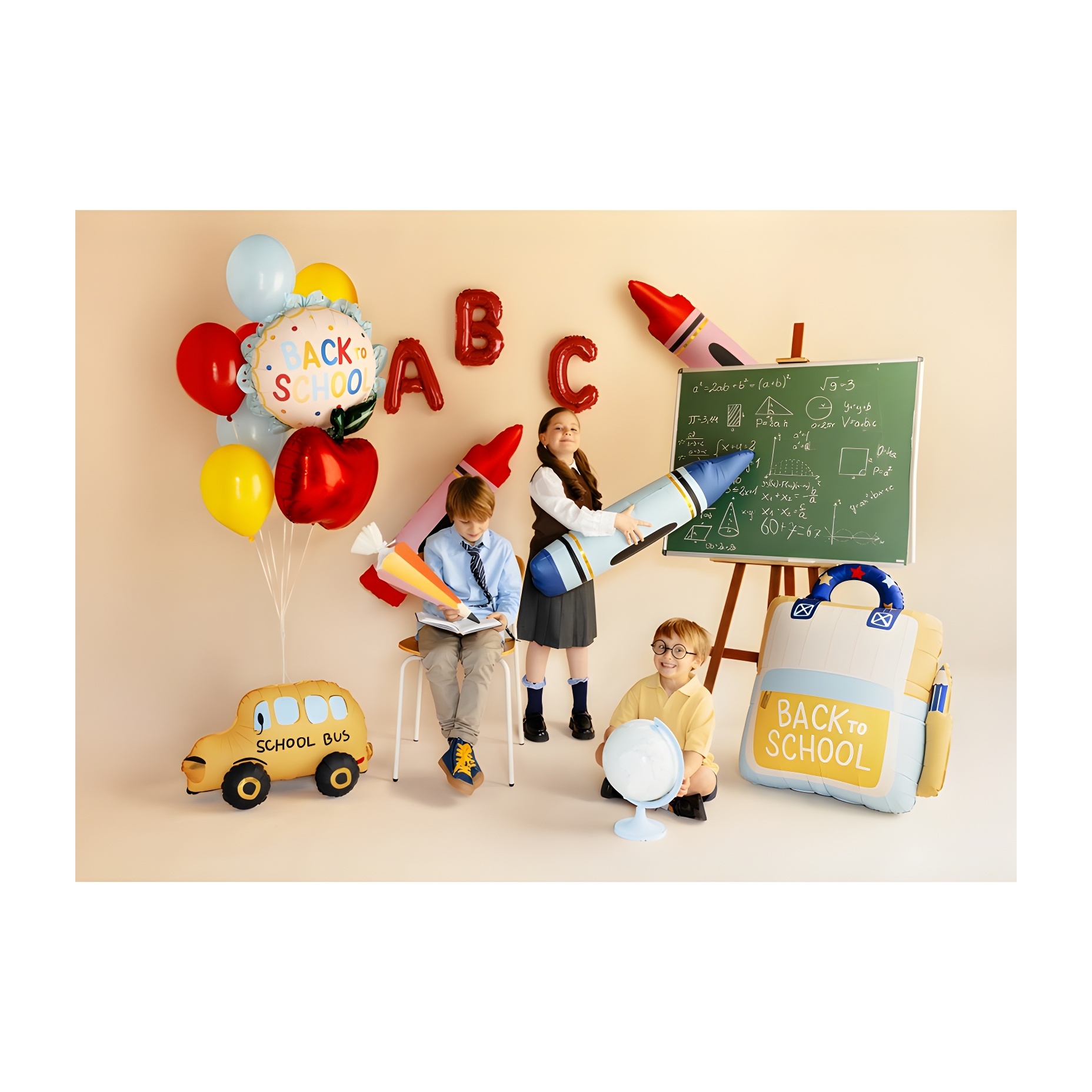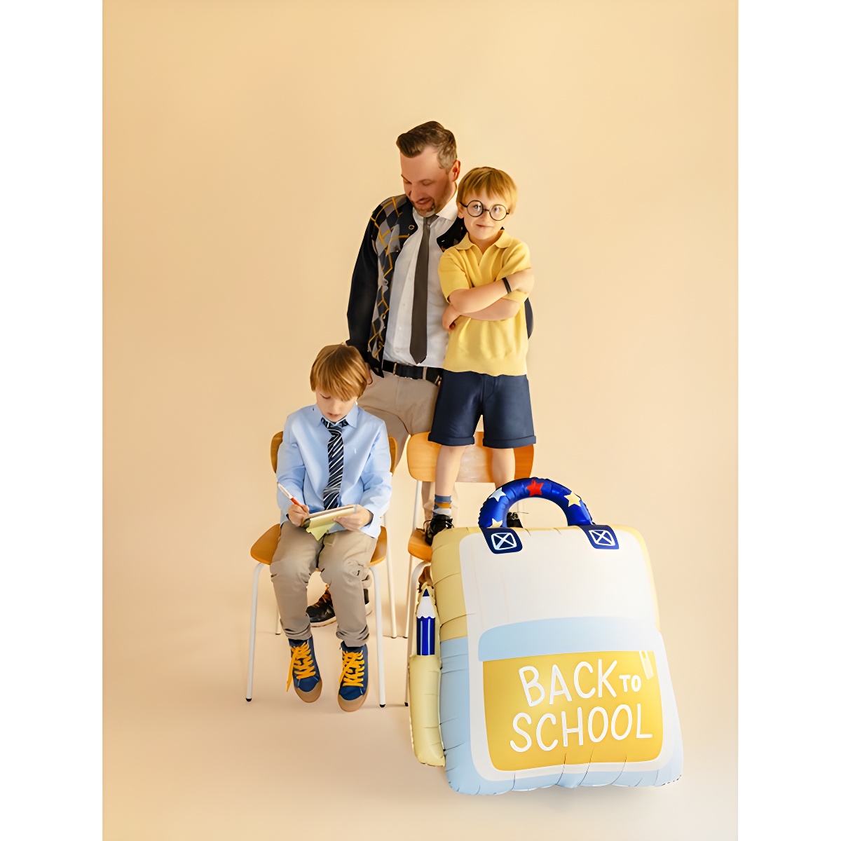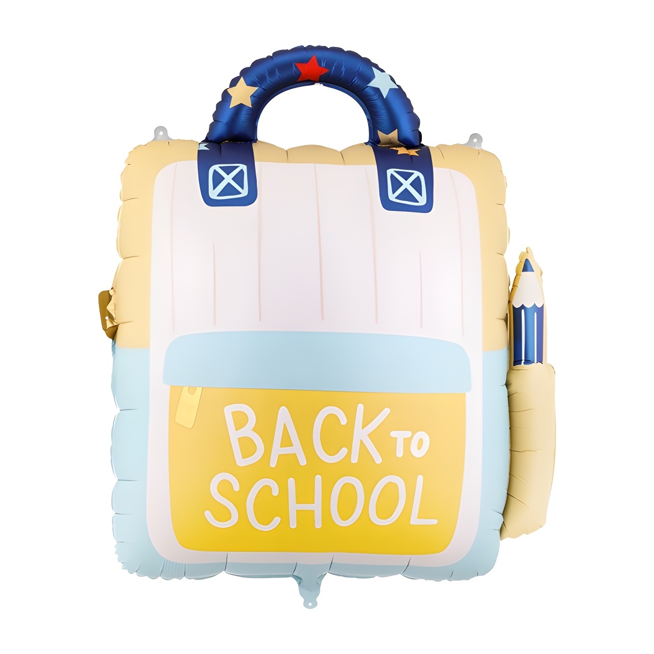 Palloncino in foil a forma di zaino con la scritta "Back to School" nei toni crema e giallo. Dona un tocco divertente e tematizzato alle celebrazioni scolastiche e agli eventi per bambini. Design vistoso e volume ben visibile che valorizza ogni allestimento decorativo. Dotato di chiusura autosigillante e occhielli per un facile posizionamento in ghirlande o centrotavola.
