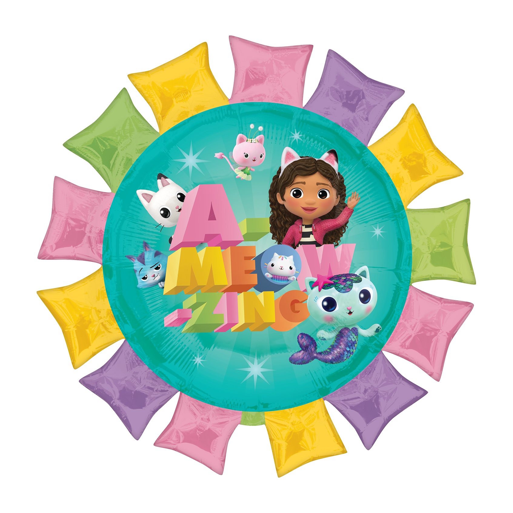 Palloncino in foil con design ufficiale Gabby's Dollhouse, nella originale forma a casetta che porta colore e divertimento alla festa di compleanno dei più piccoli.