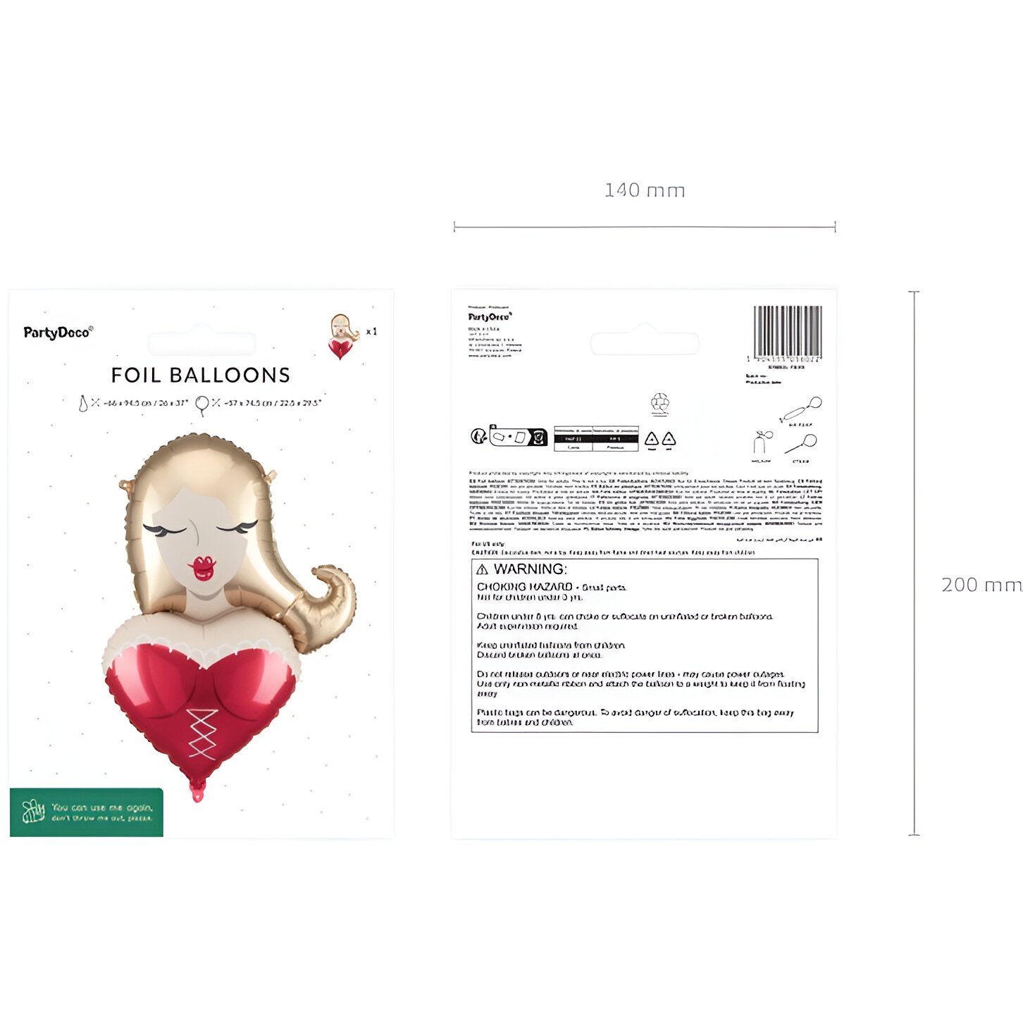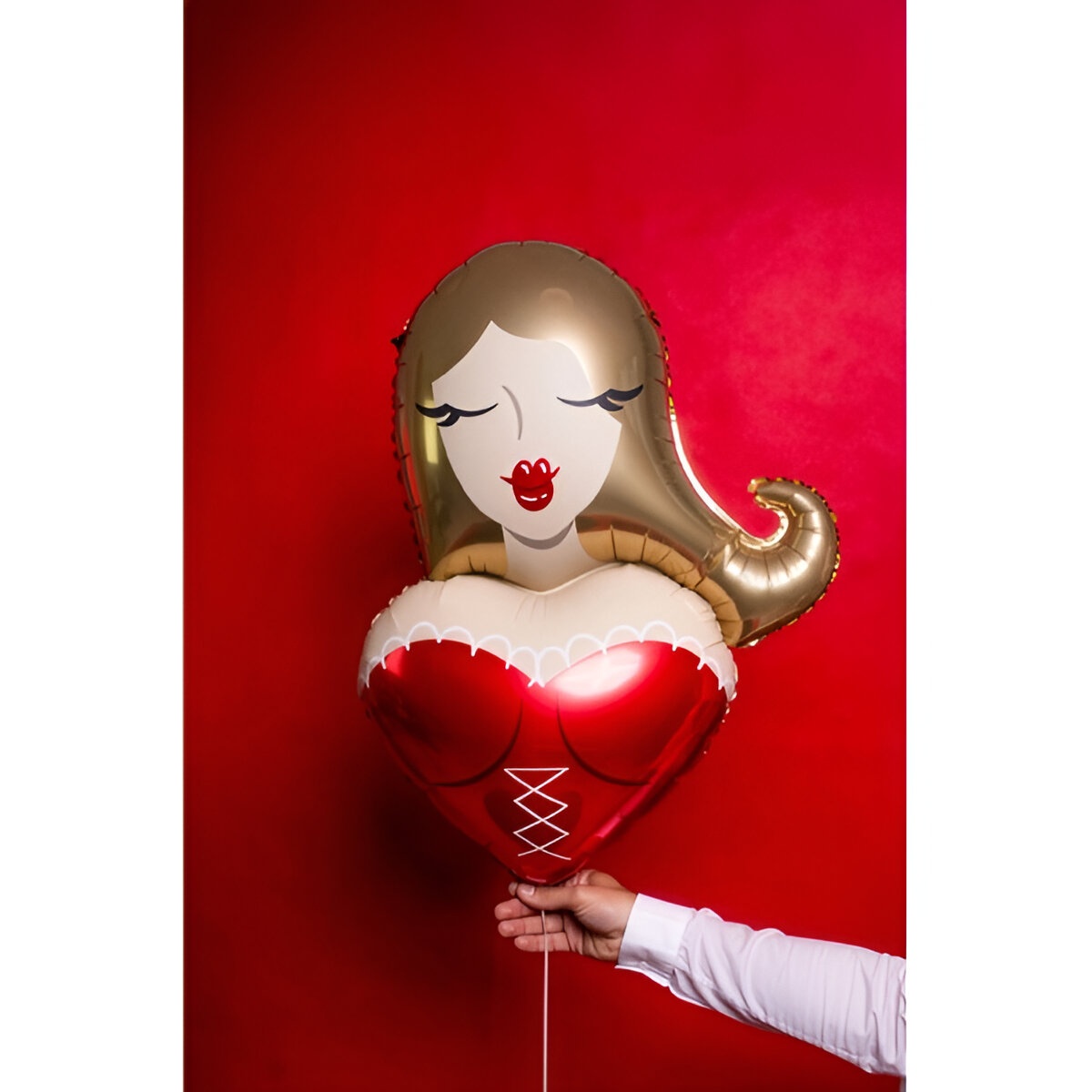Palloncino decorativo dal design femminile: figura di donna bionda su un grande cuore rosso con dettagli dorati e labbra vistose. Perfetto per addii al nubilato e feste, per dare un tocco elegante e giocoso. Dimensioni approssimative prima del gonfiaggio 66 x 94,5 cm e dopo il gonfiaggio circa 57 x 74,5 cm. Si può gonfiare ad aria o con elio per adattarsi all'allestimento che preferisci.