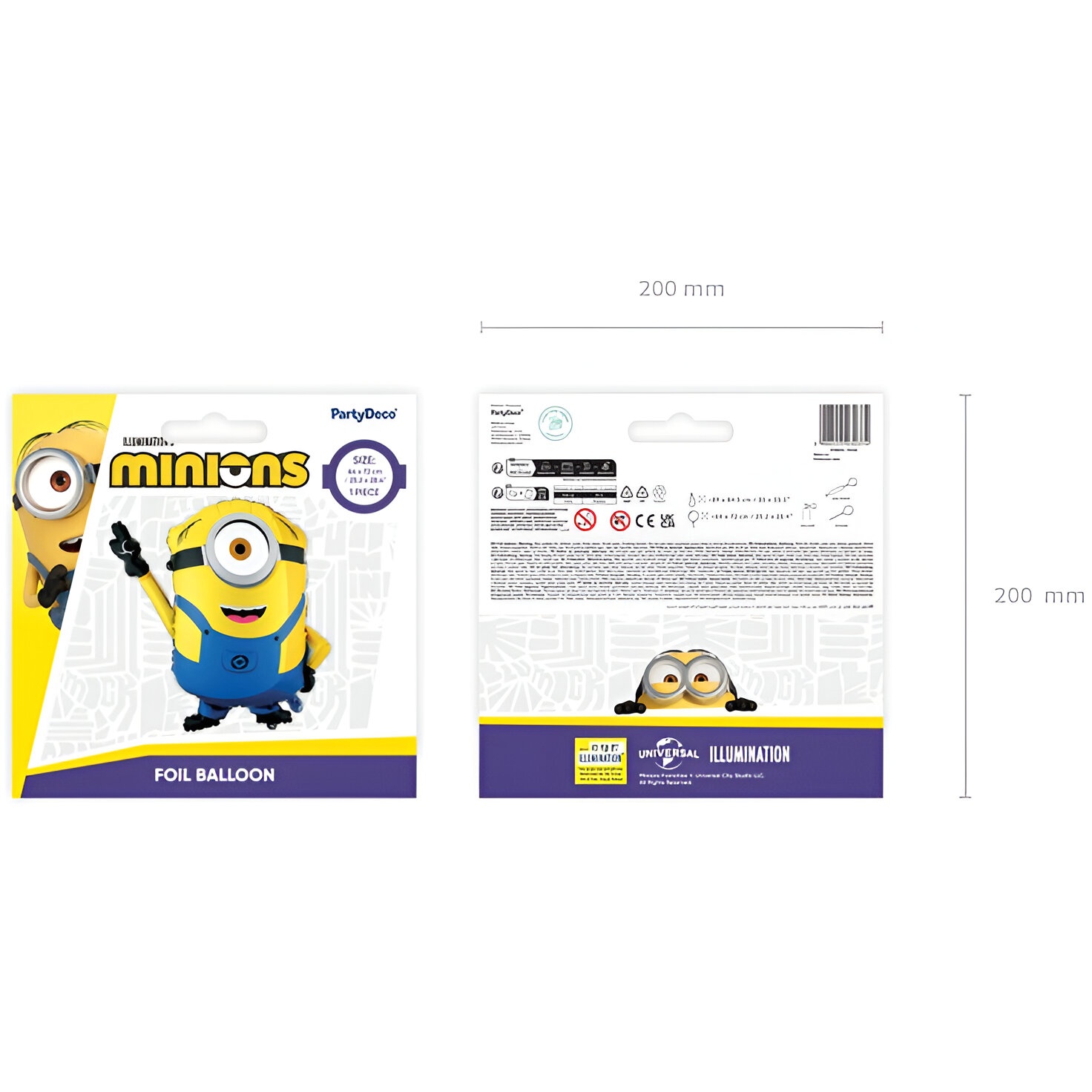Palloncino foil ufficiale del Minion Mel nei vivaci toni giallo e blu. Dimensioni prima del gonfiaggio: circa 89 x 84,5 cm; dimensioni dopo il gonfiaggio: circa 64 x 72 cm. Adatto per gonfiaggio ad aria o a elio, ideale per decorare feste per bambini e aggiungere un tocco divertente. Il palloncino è auto-sigillante e dispone di occhielli integrati per un fissaggio semplice. Include una cannuccia per facilitare il gonfiaggio.
