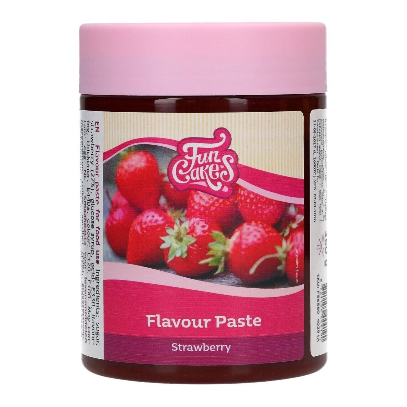 Ingredienti fragola: zucchero, fragola (27%), sciroppo di glucosio, acidificante: E330, aroma, addensante: E440a, coloranti: E120, E100.